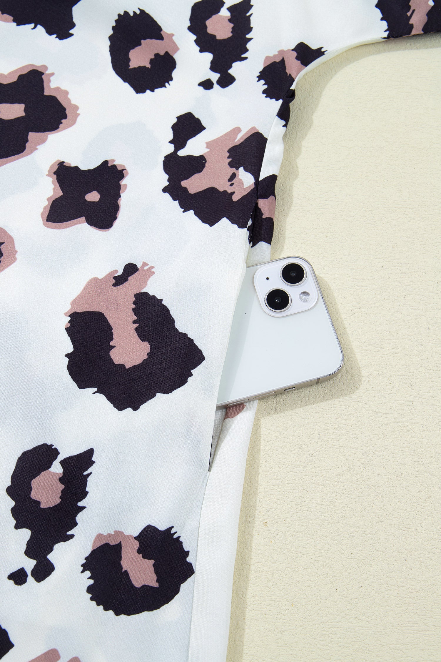 Khaki Leopard Print Contrast V Neck Plus Size Shift Mini Dress