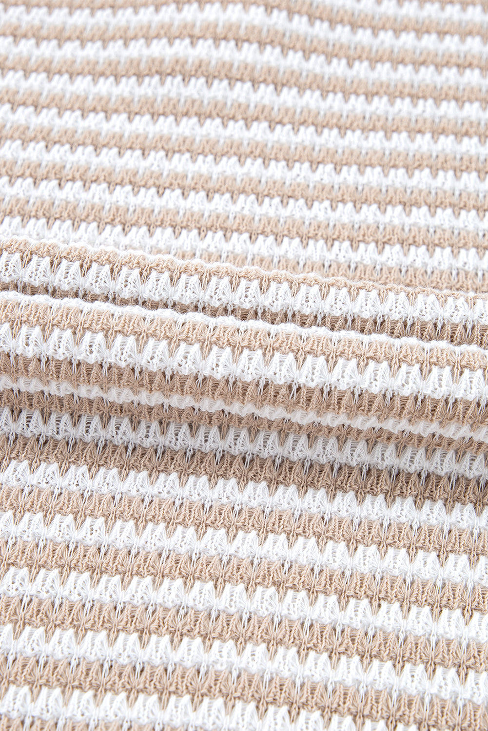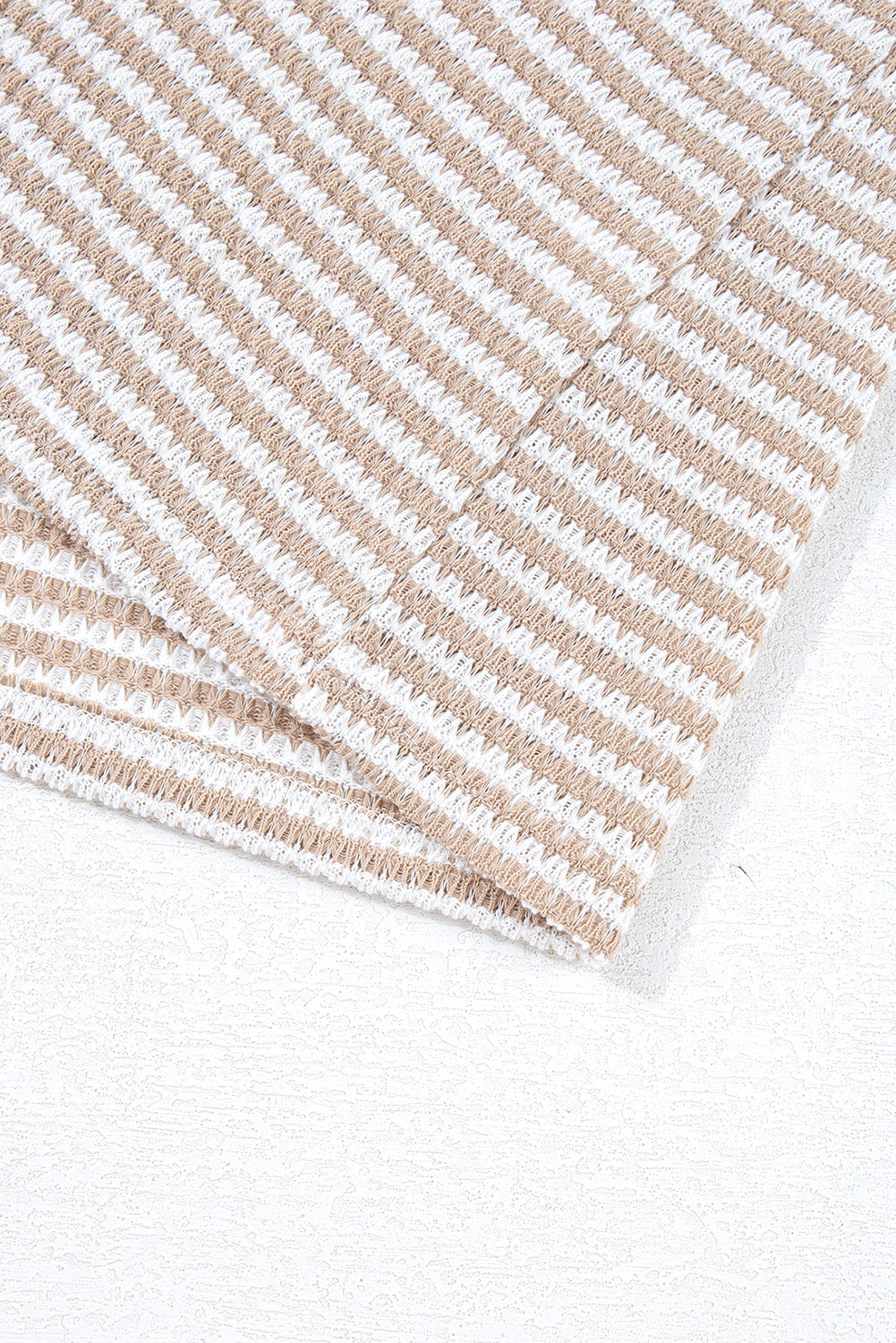 Khaki Stripe Buttoned Front V Neck Knitted T Shirt