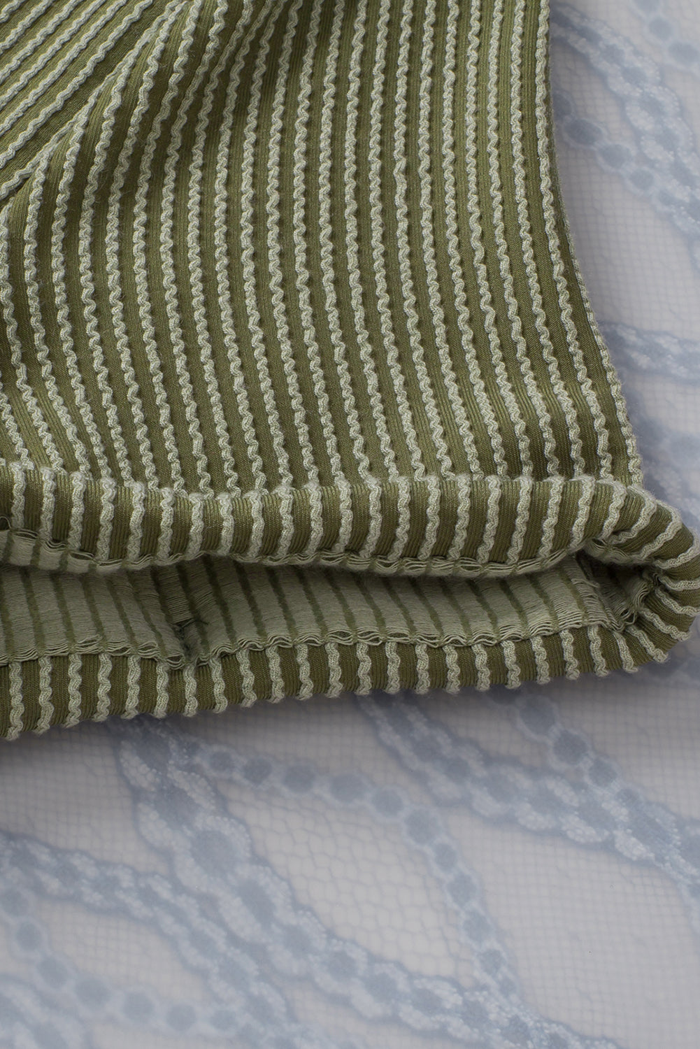 Laurel Green Twist Short Sleeve Corded V Neck Top