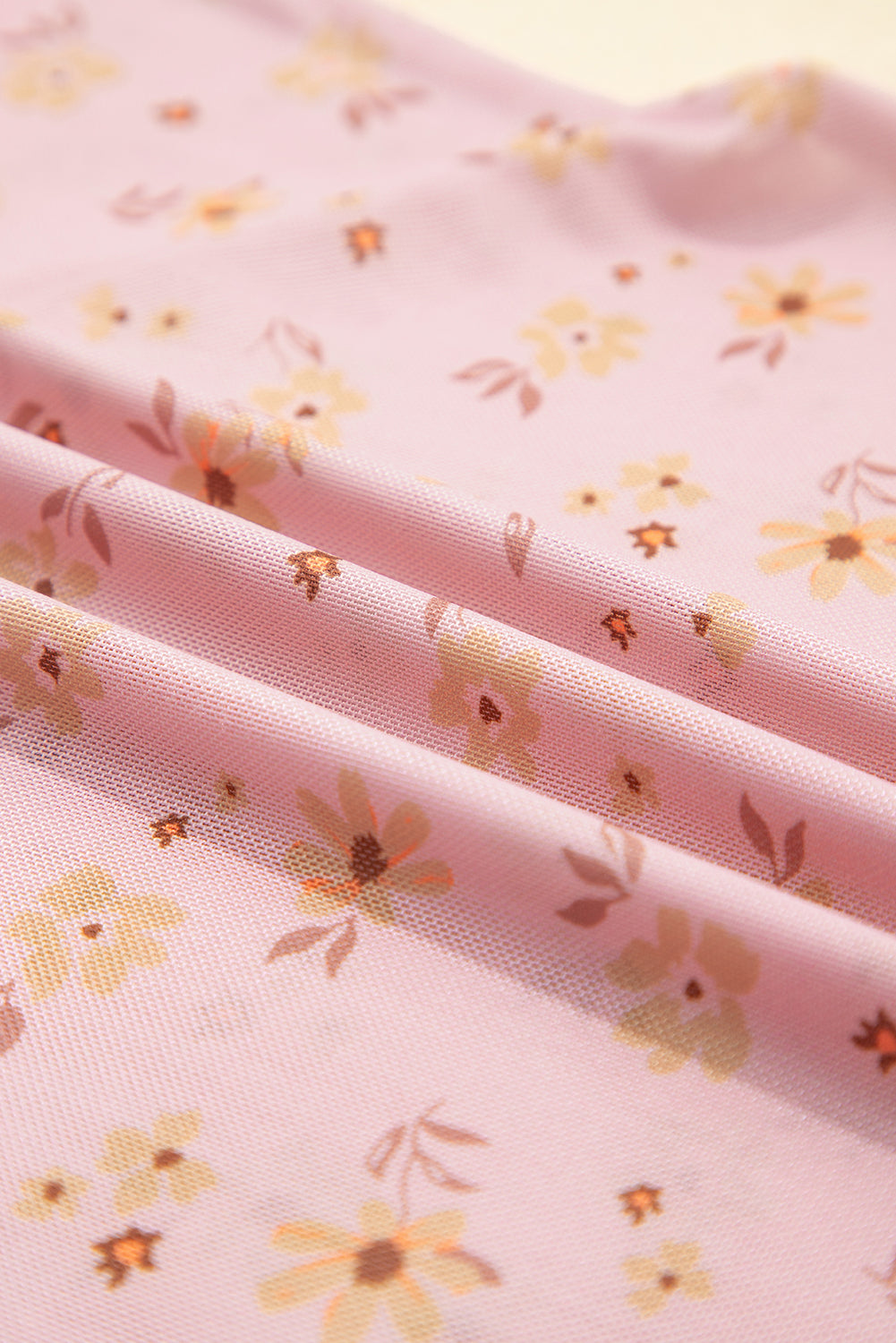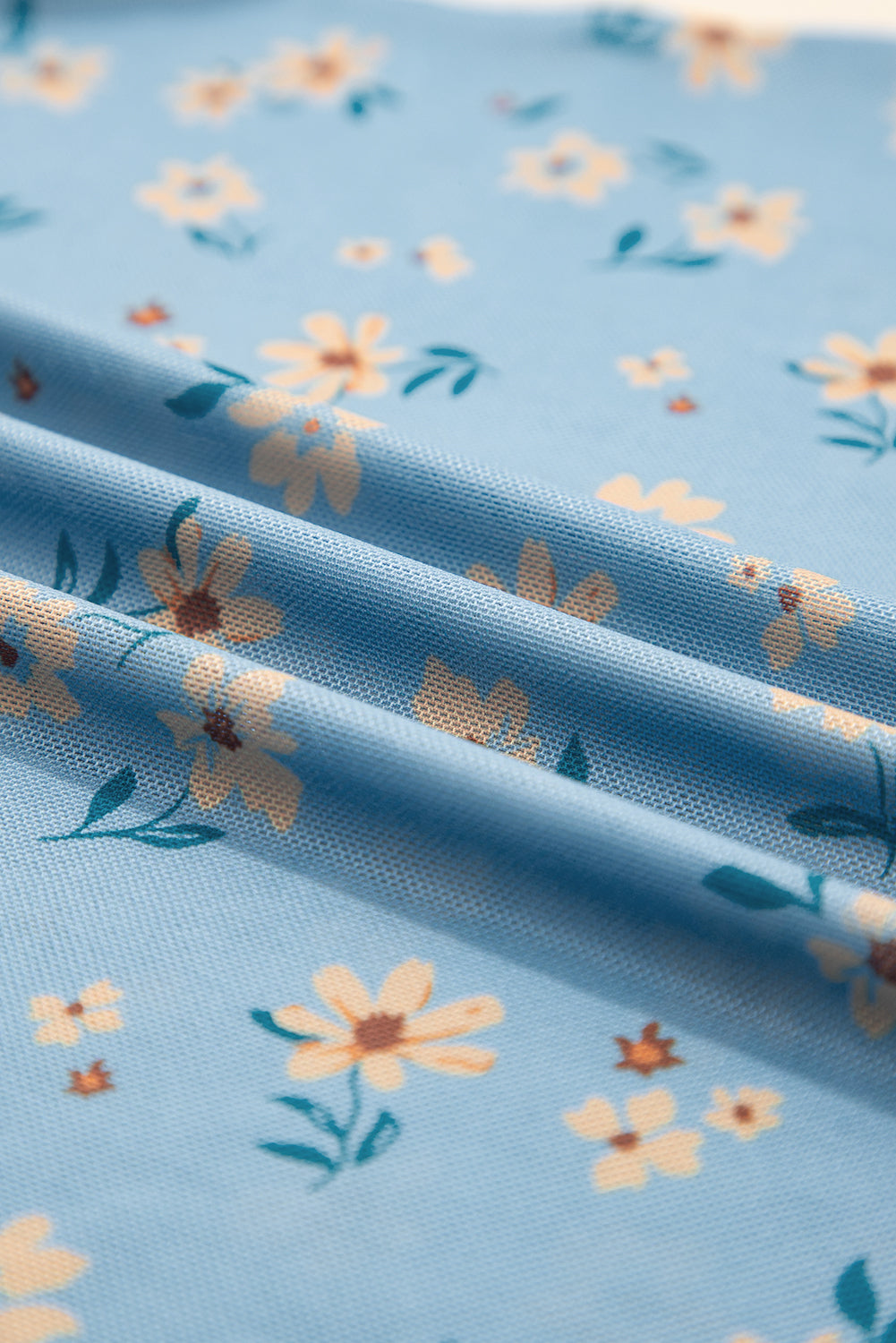 The lettuce trim makes this mesh floral top more delicate.
