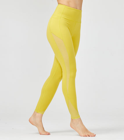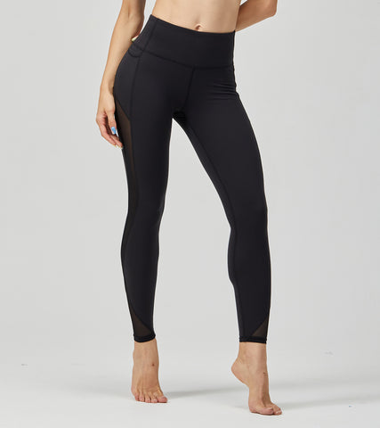 LOVESOFT Womens Blue Side Pockets Yoga Lggings With Mesh Sides