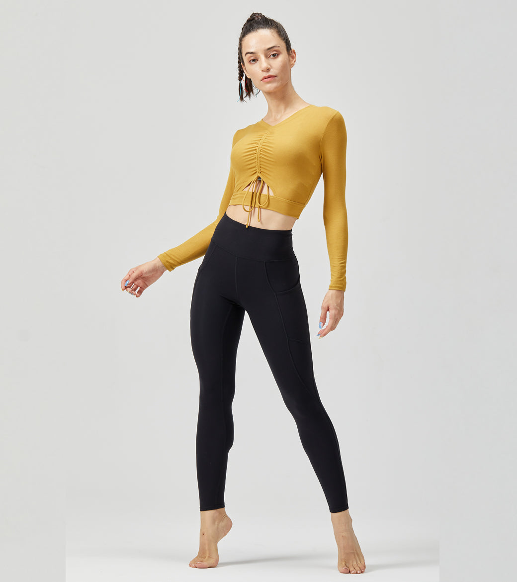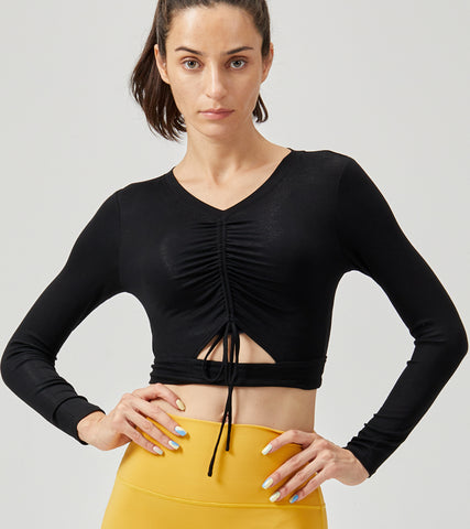 LOVESOFT Womens Yellow Thin Drawstring Adjustable Long Sleeve Top