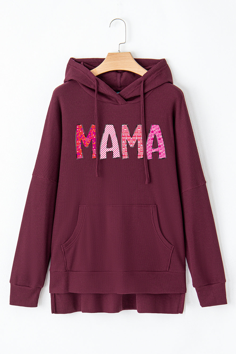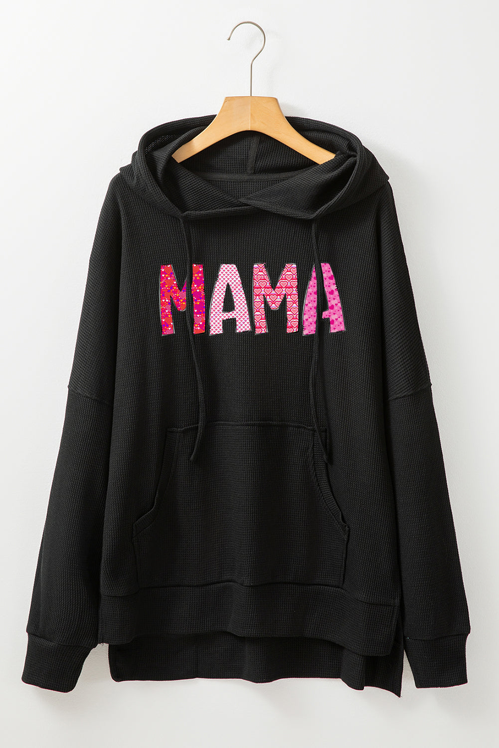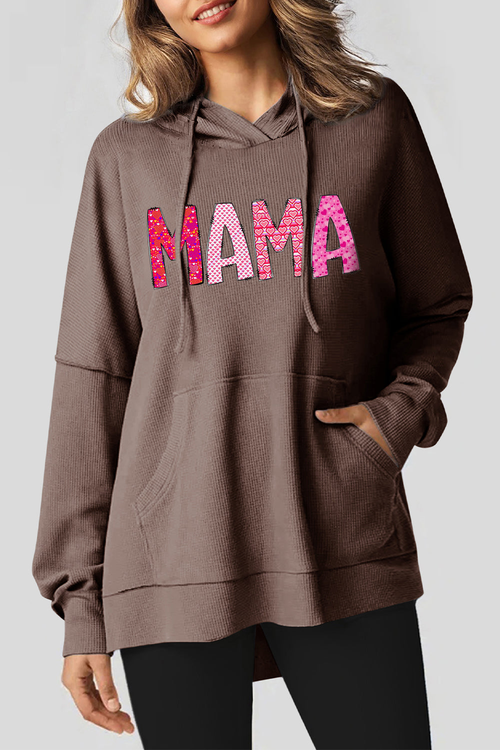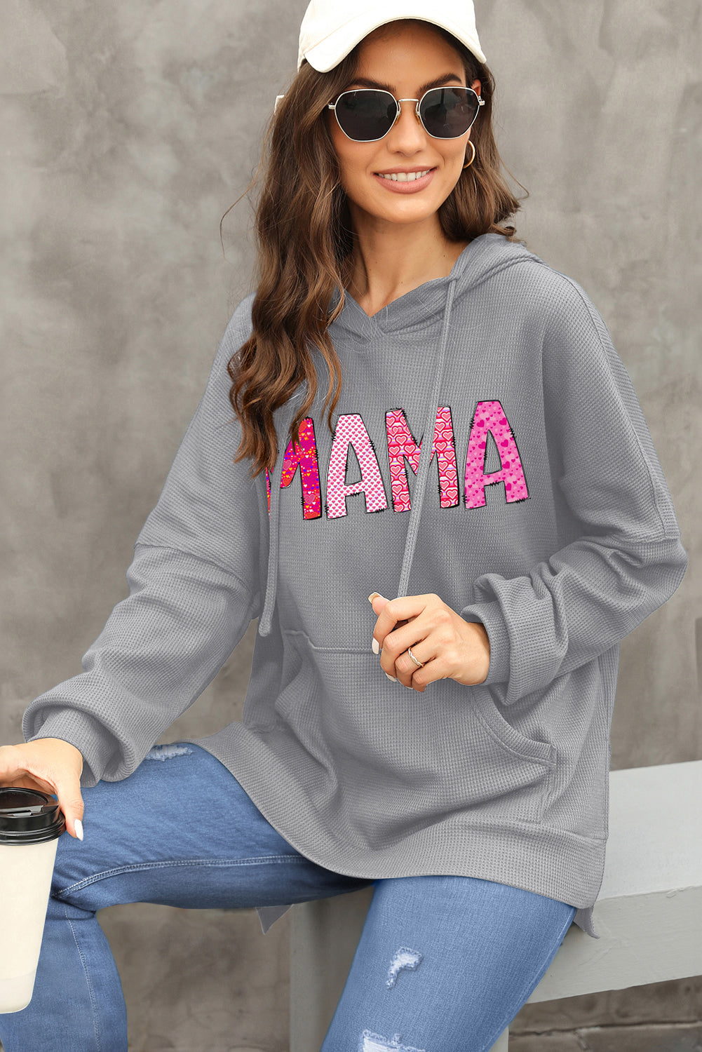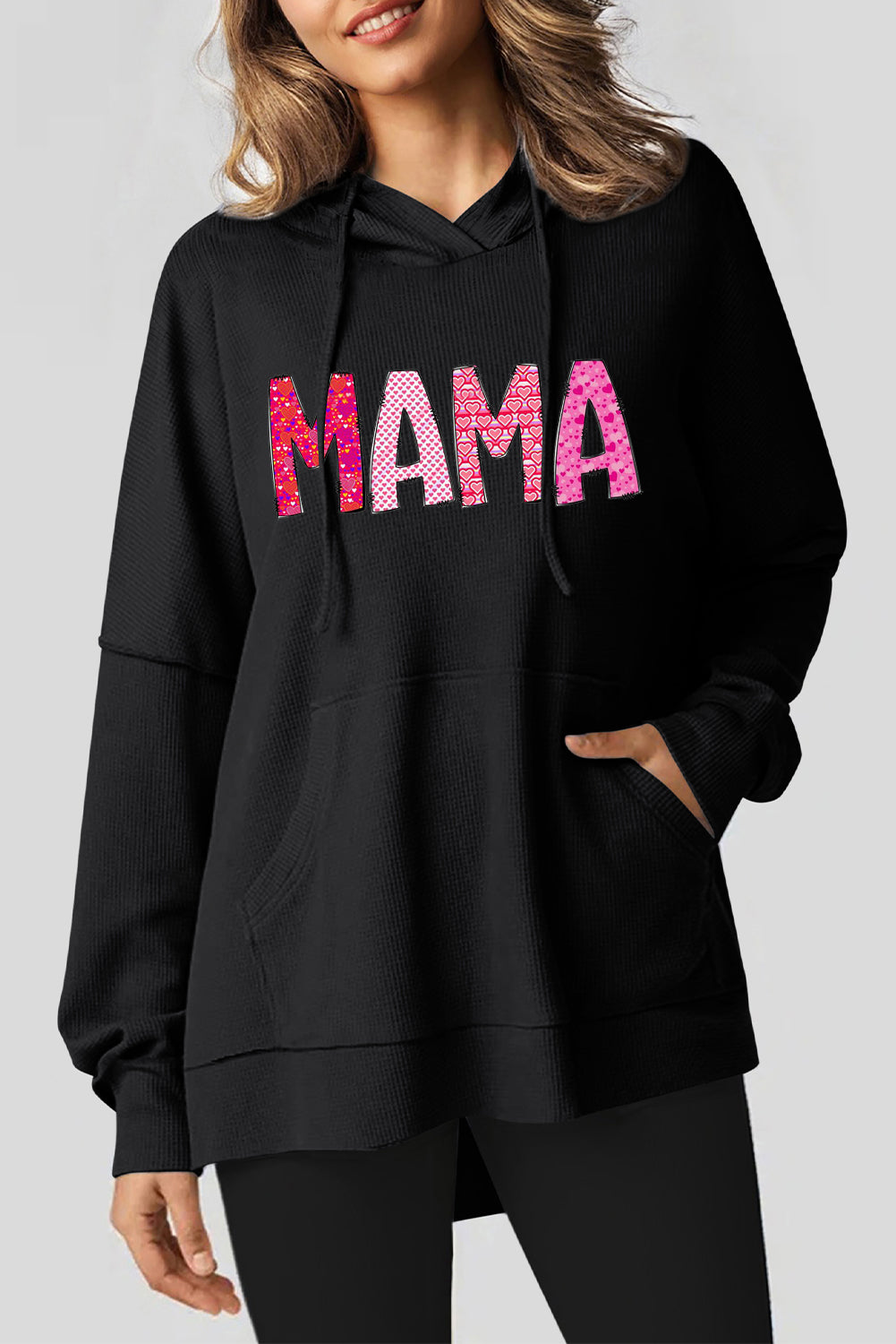 MAMA Letters Print Waffle Knit Fleece-Lined High-Low Hoodie
