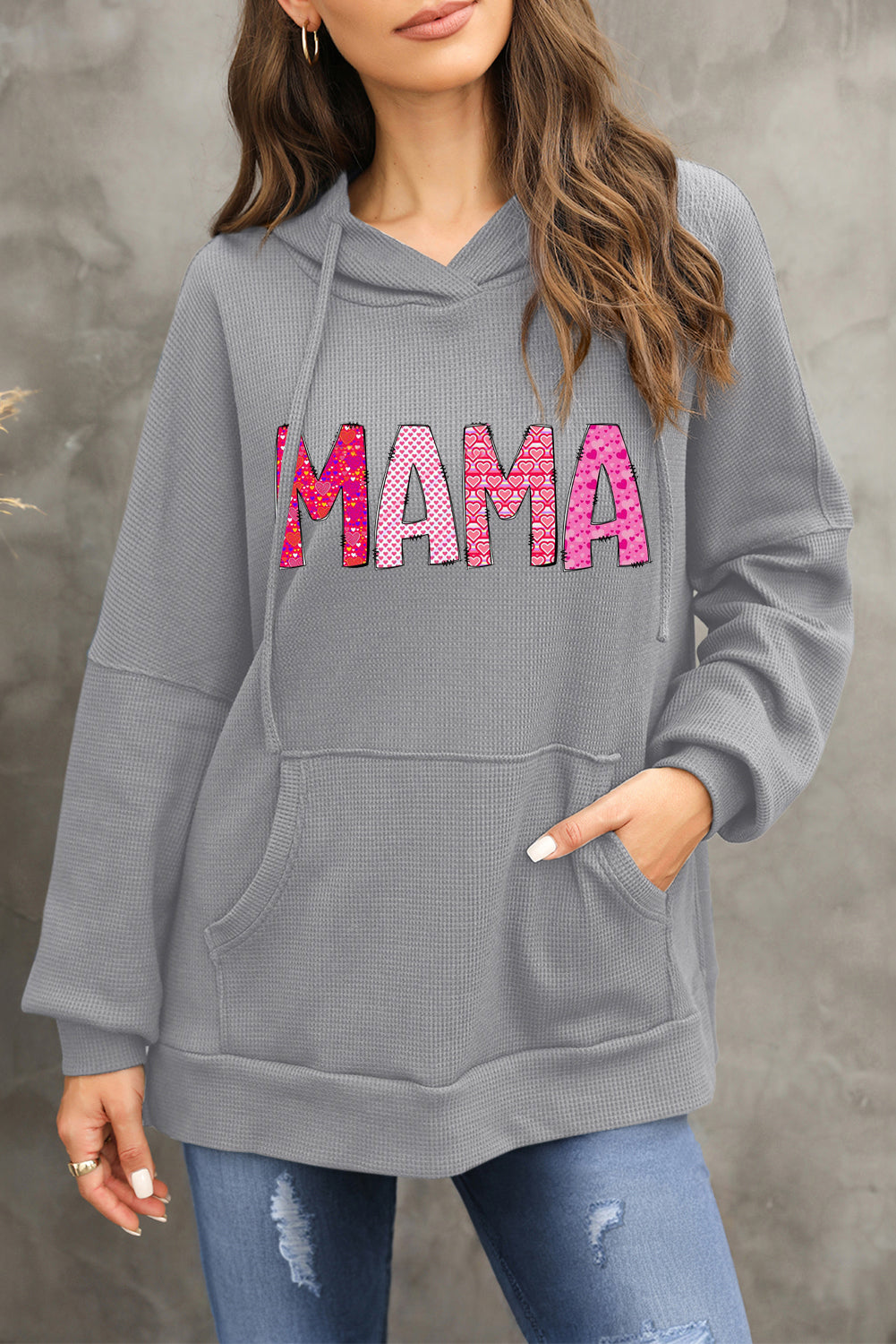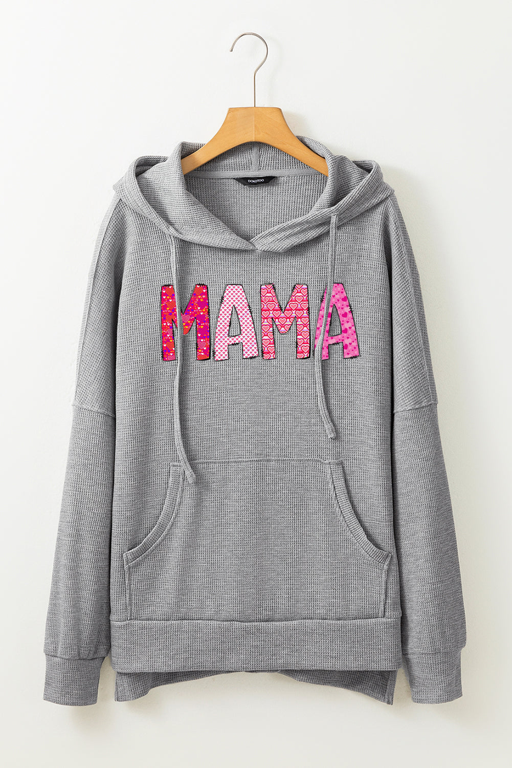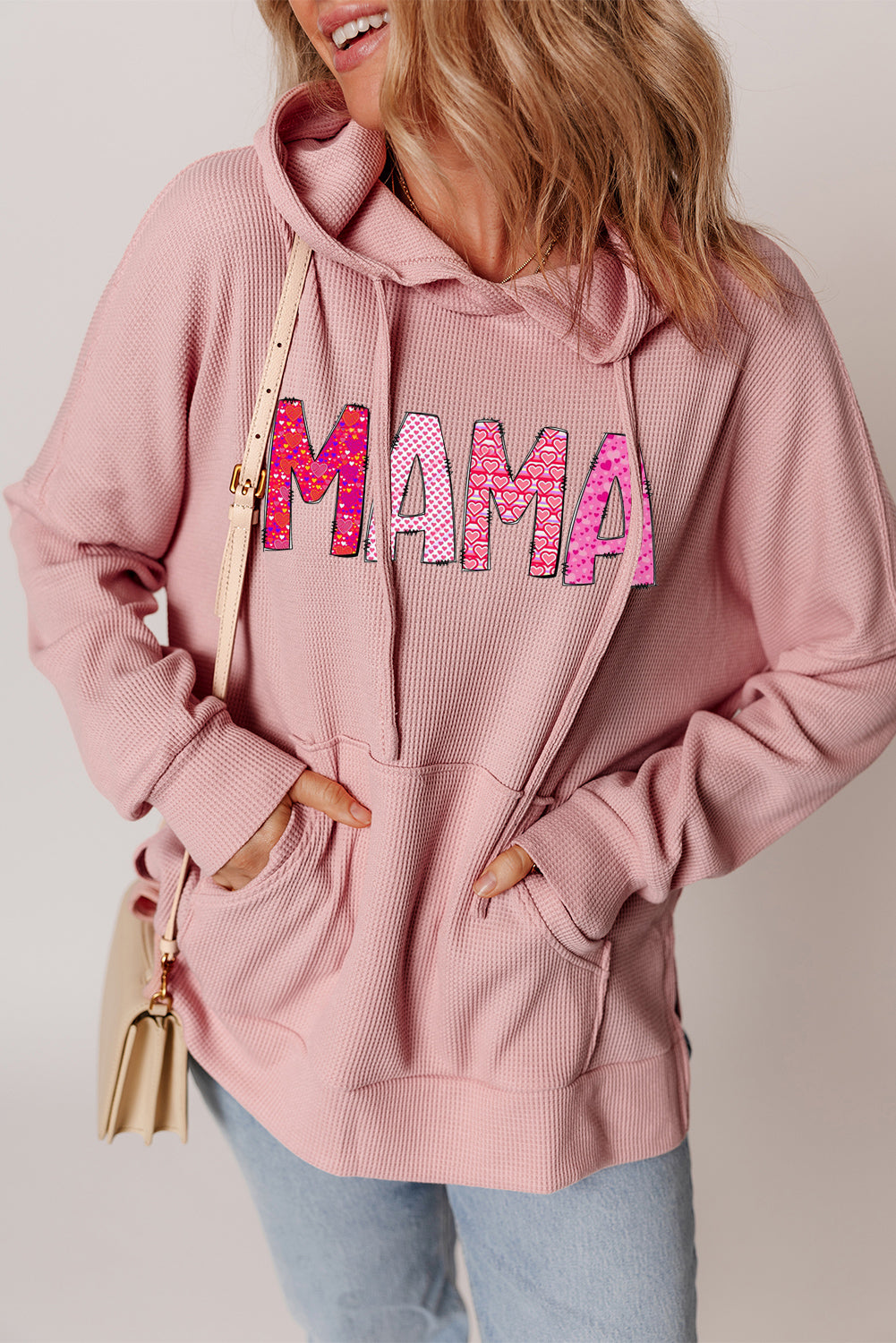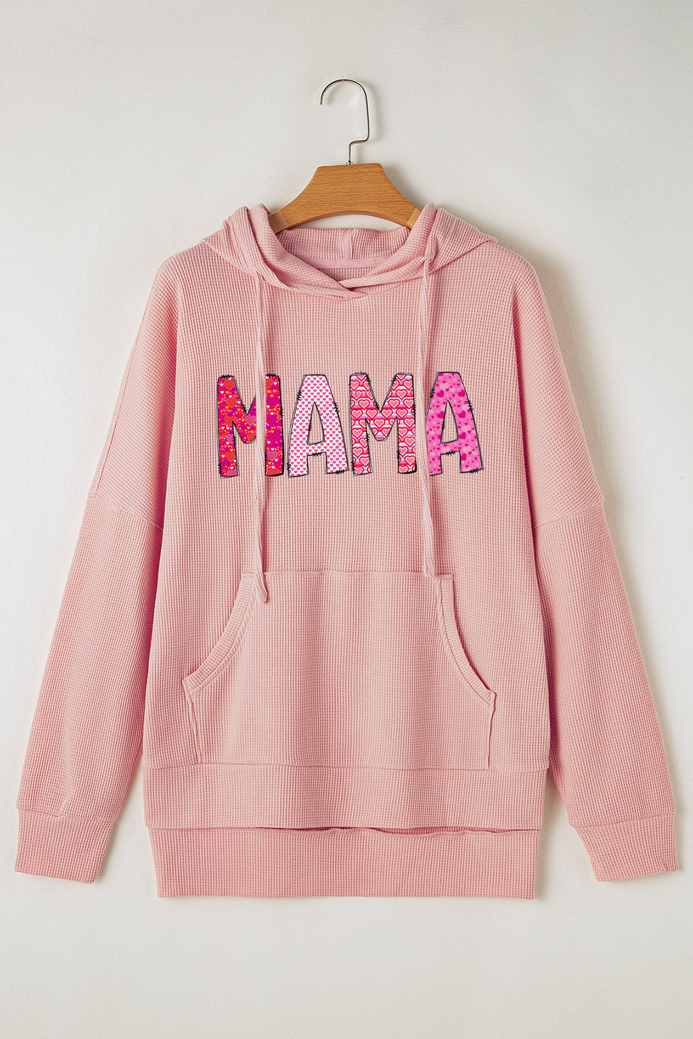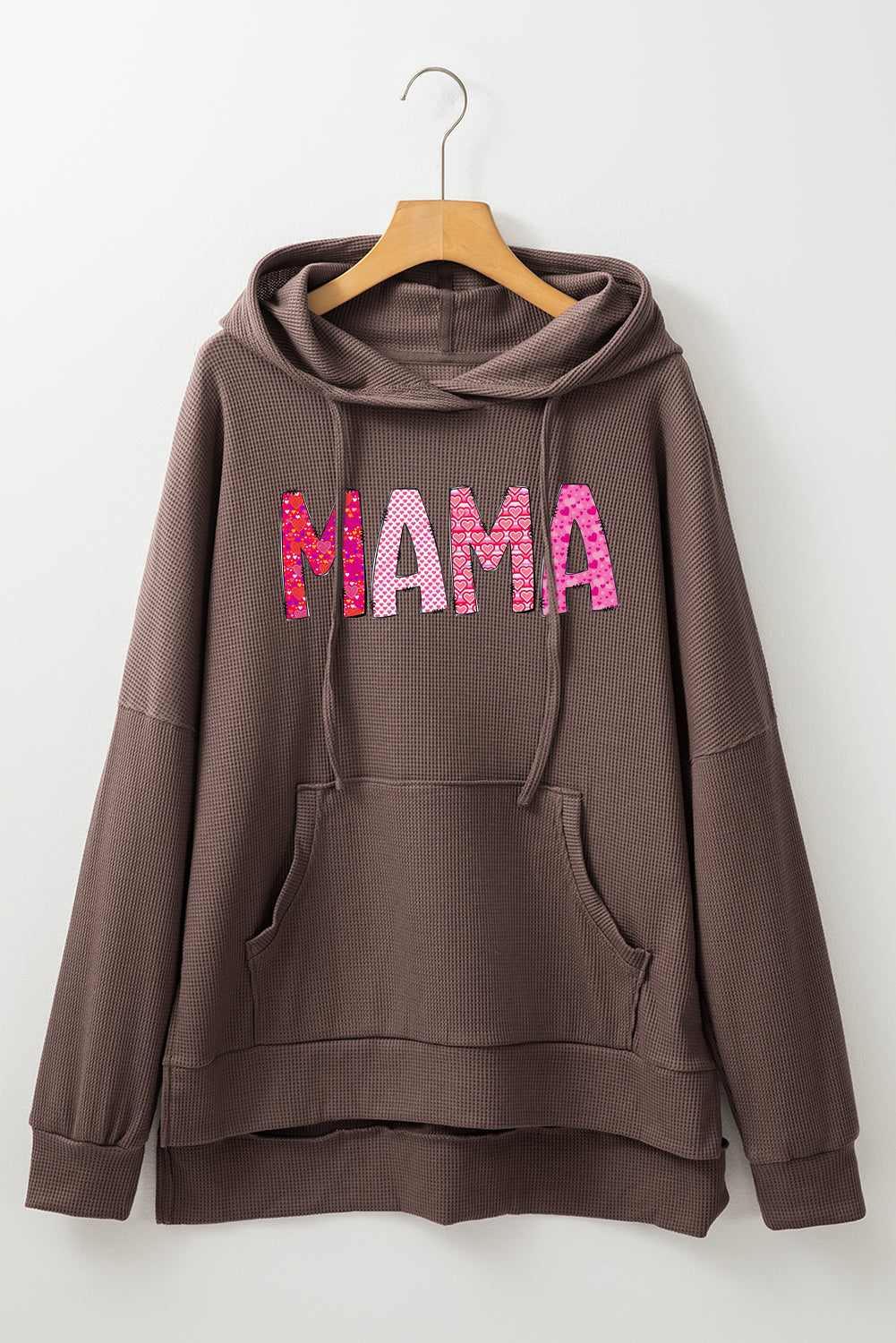 MAMA Letters Print Waffle Knit Fleece-Lined High-Low Hoodie