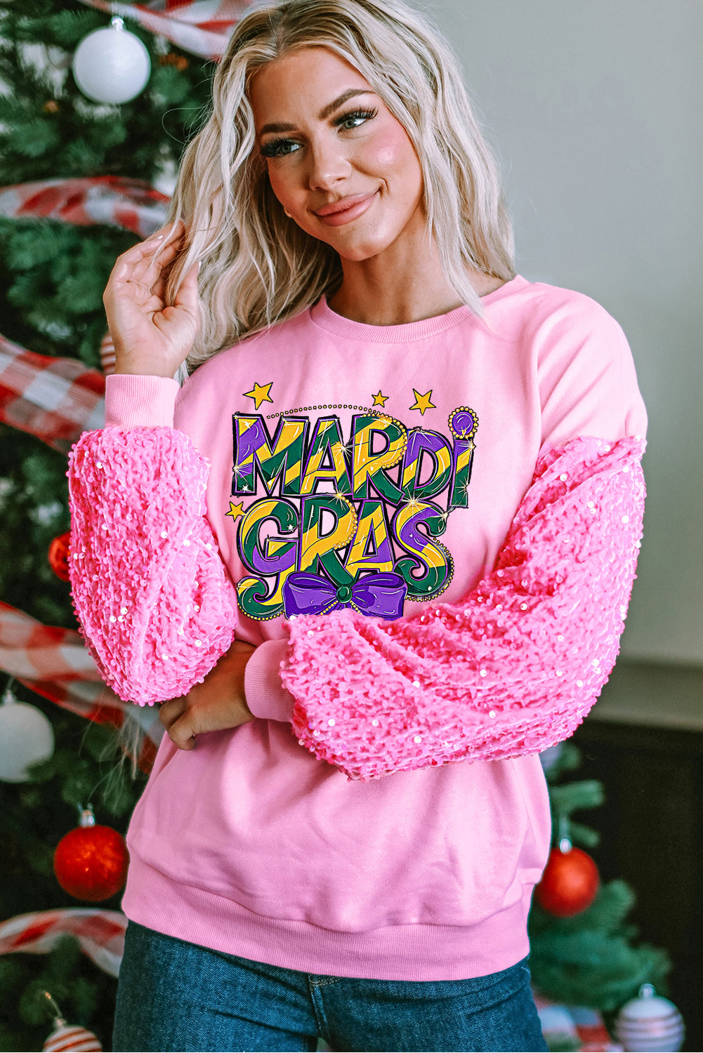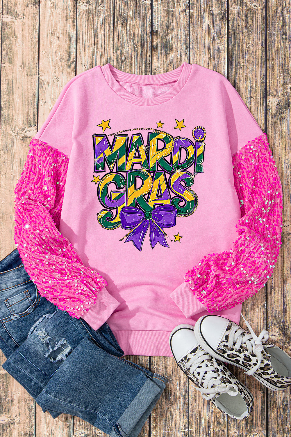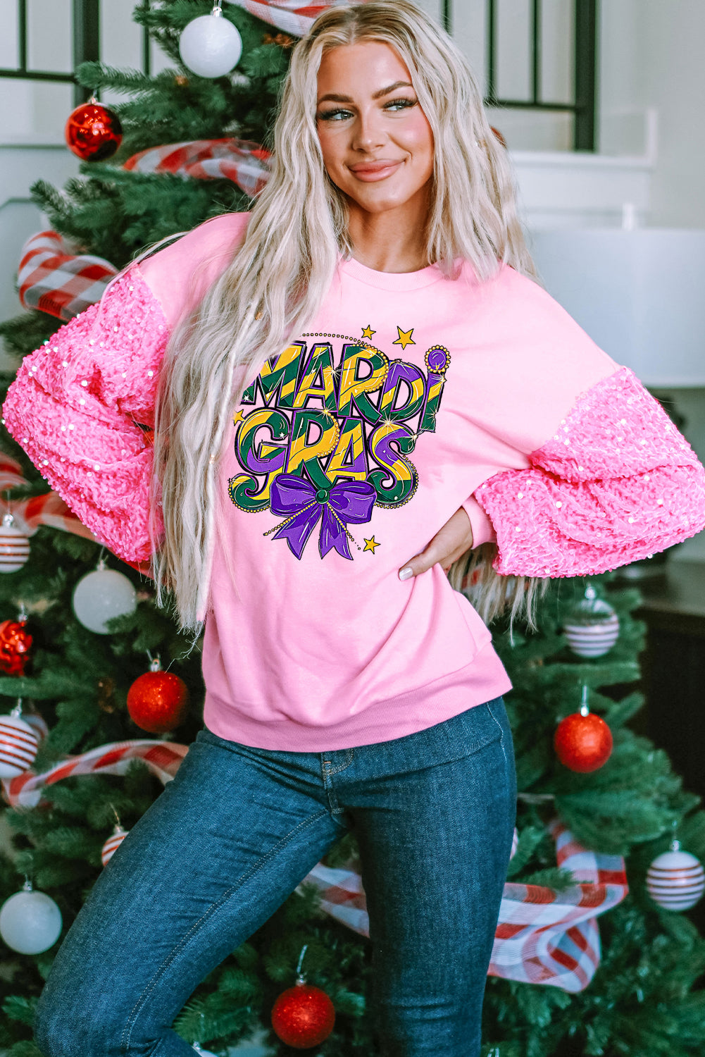 Mardi Gras Sequin Bow Patchwork Long Sleeve Pullover Top