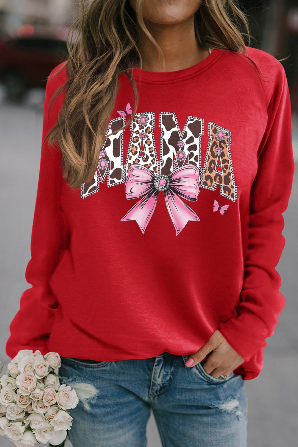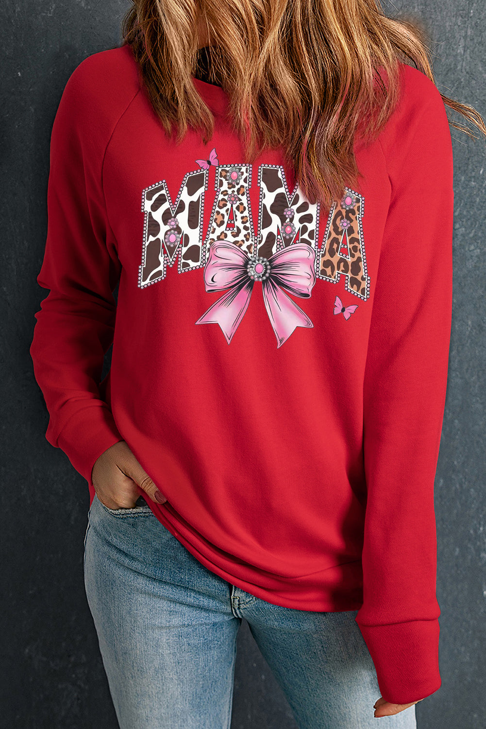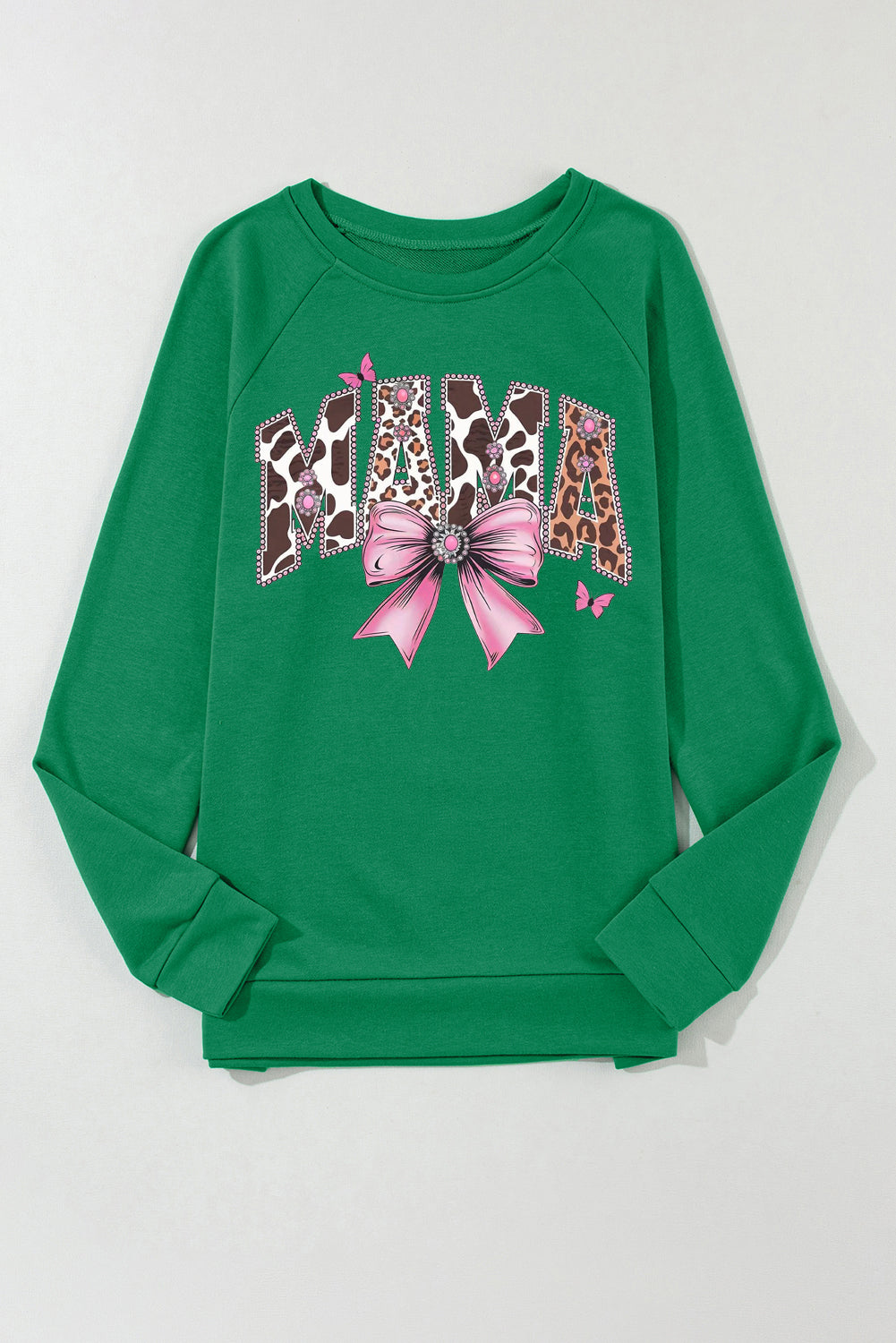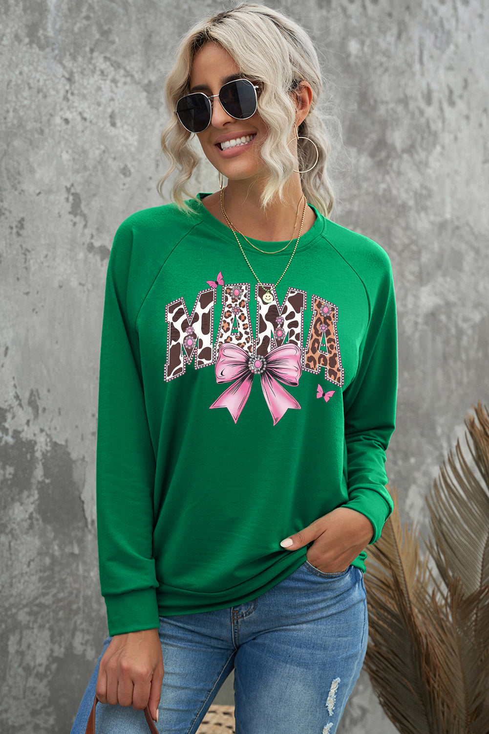 Mother's Day Bow Print Round Neck Raglan Sleeve Sweatshirt
