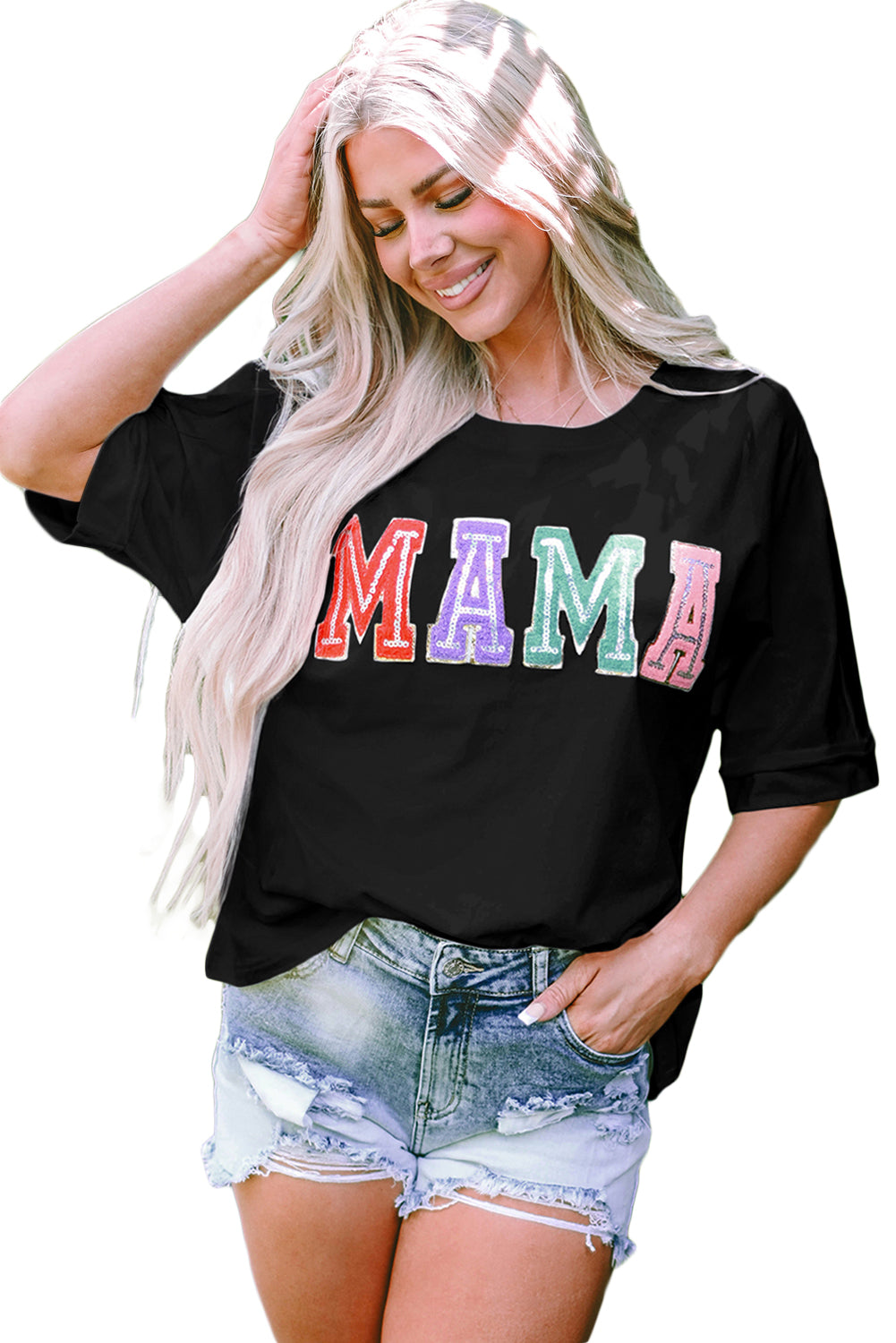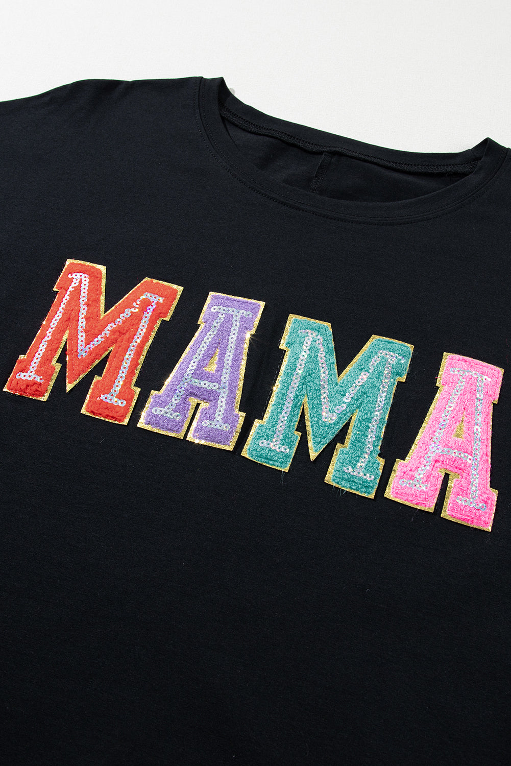 Multicolor MAMA Chenille Patched Crew Neck T Shirt
