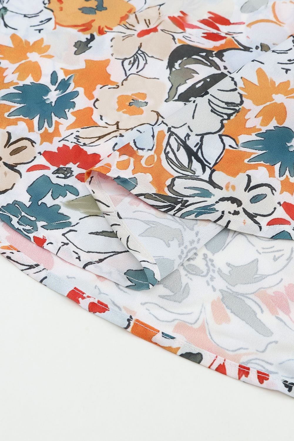 Multicolor Split V Neck Puff Sleeve Flower Print Blouse