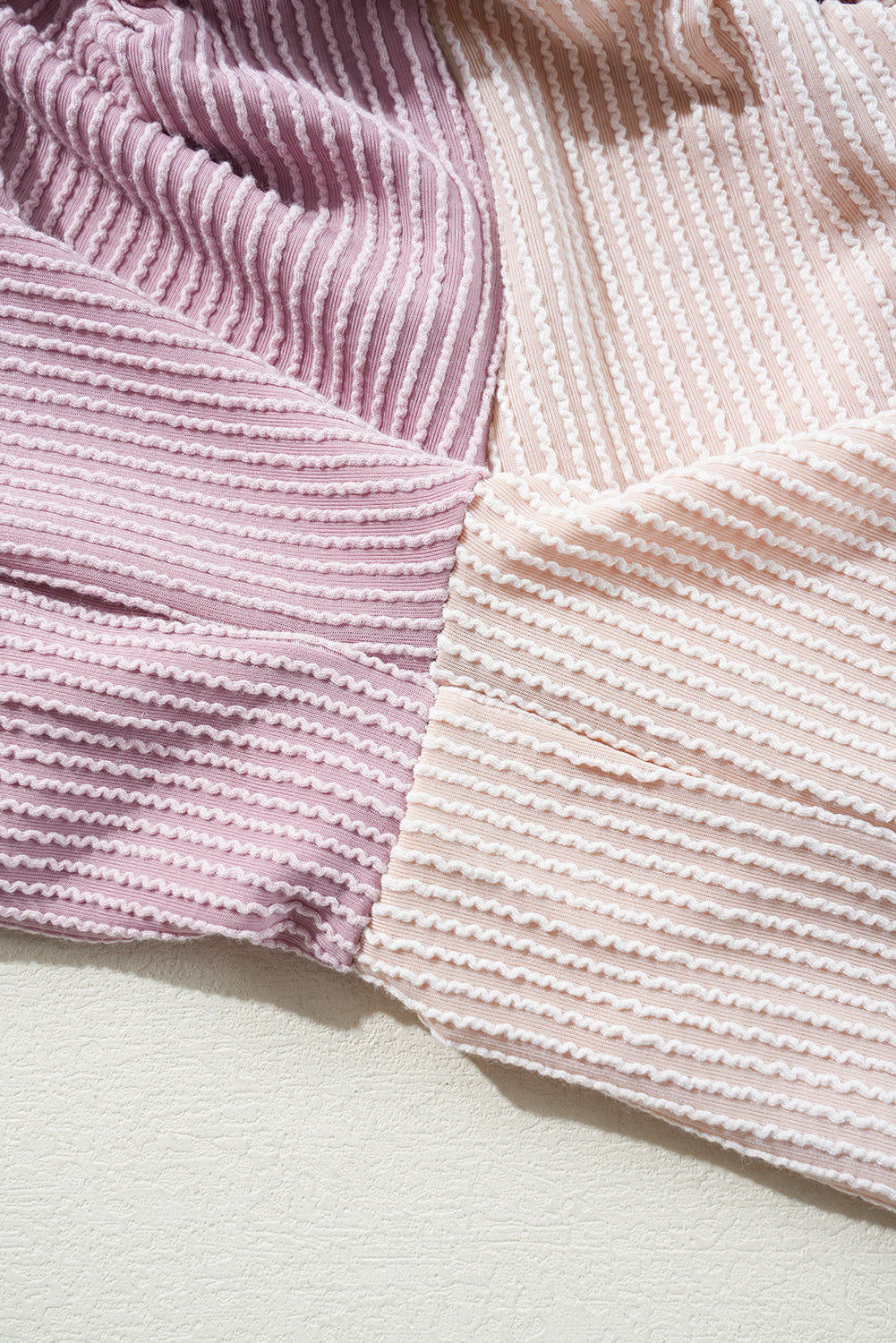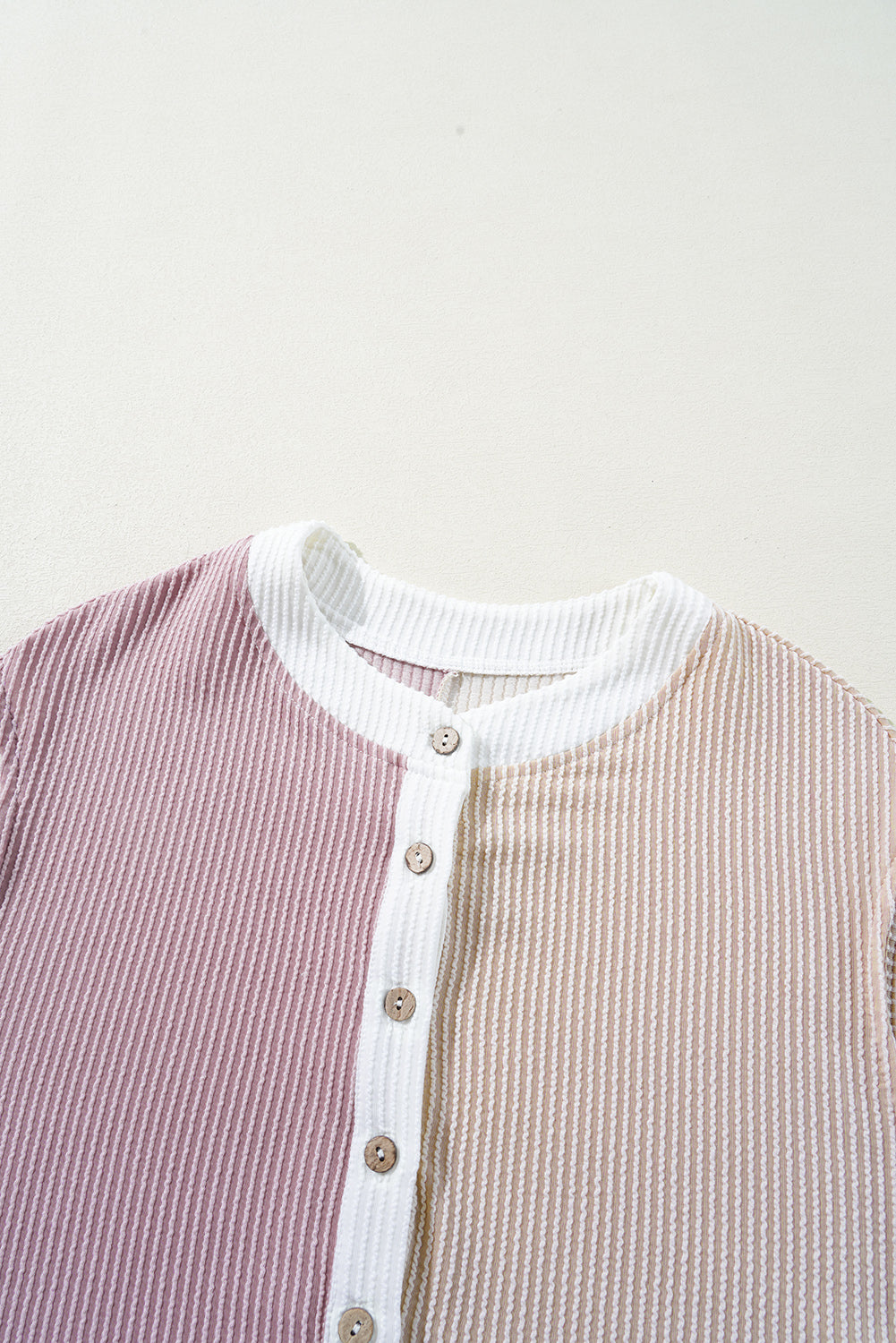 Parchment Color Block Corded Knit Buttoned Super Wide Leg Jumpsuit