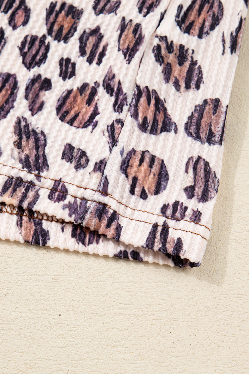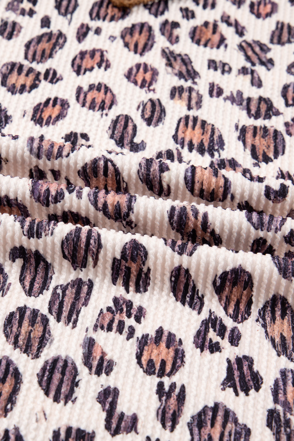 Parchment Leopard Colorblock Patchwork Twist Ribbed Plus Size V Neck Baggy Pullover
