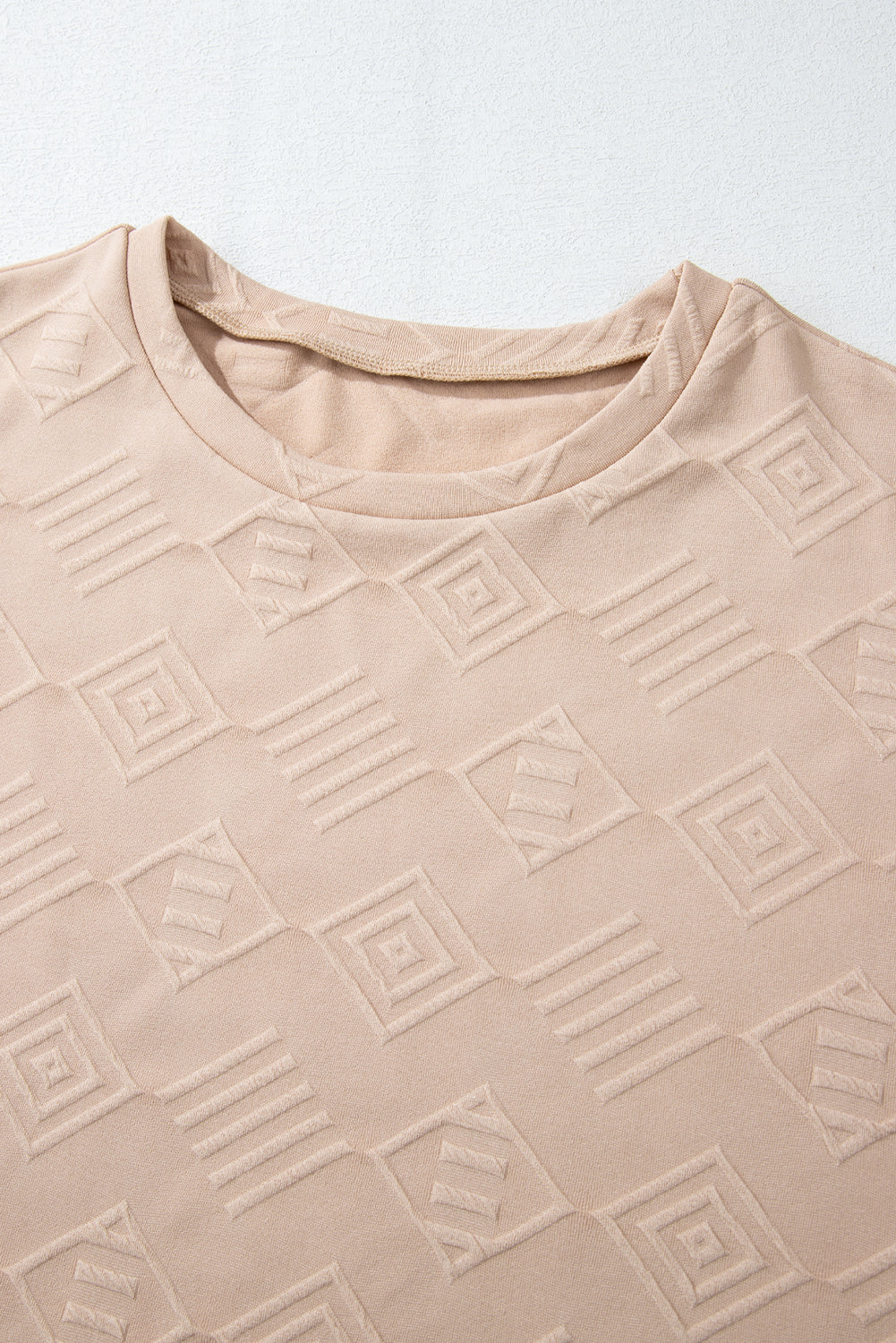 Parchment Plus Size Textured Drop Shoulder Crew Neck Sweatshirt