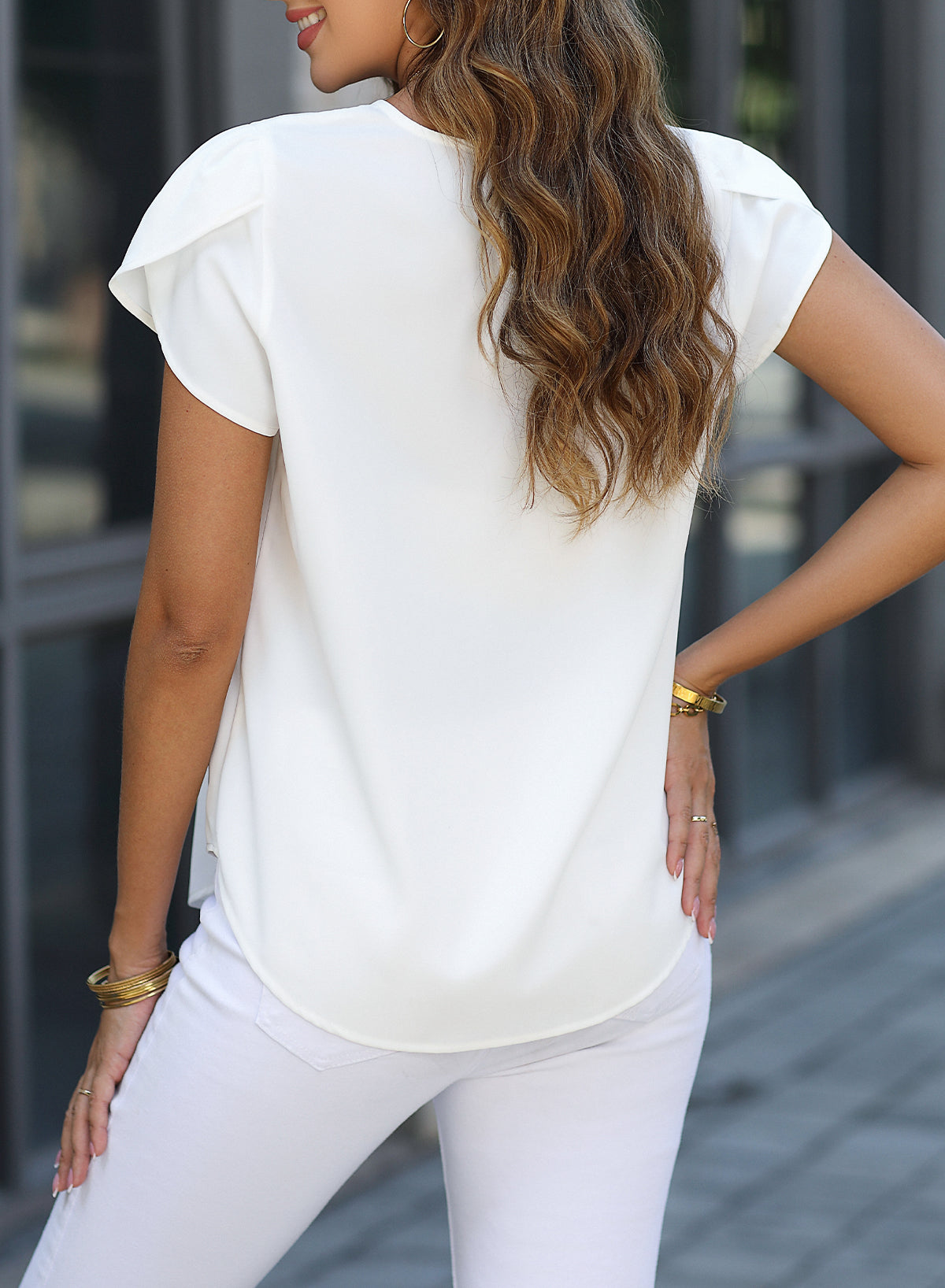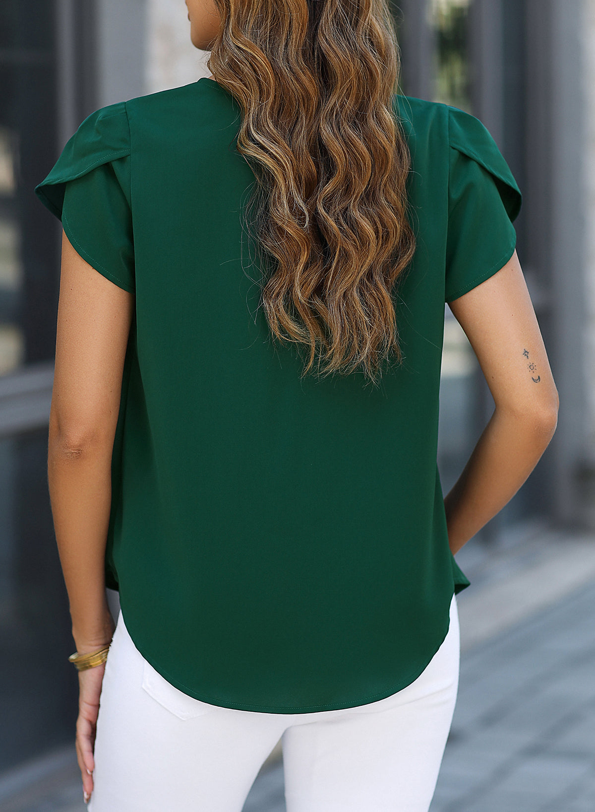 - Petal Sleeve Pleated Keyhole Back Blouse