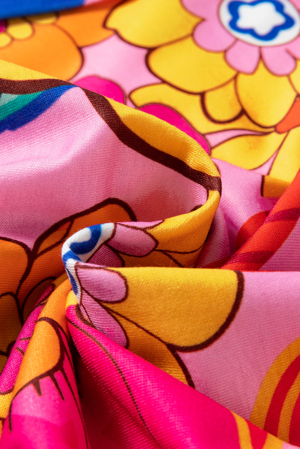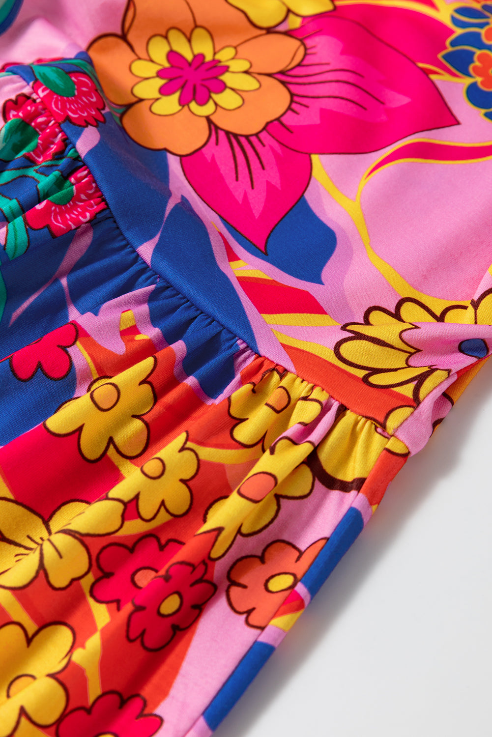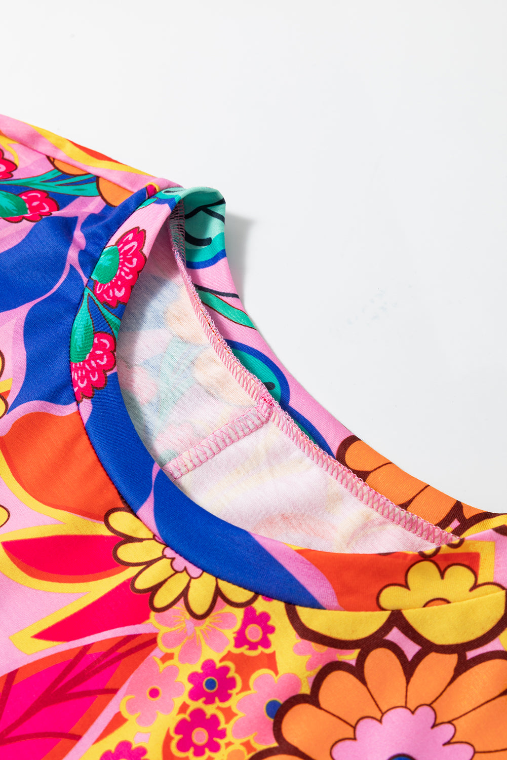 Pink Floral Print Short Sleeve Plus Size Babydoll Blouse