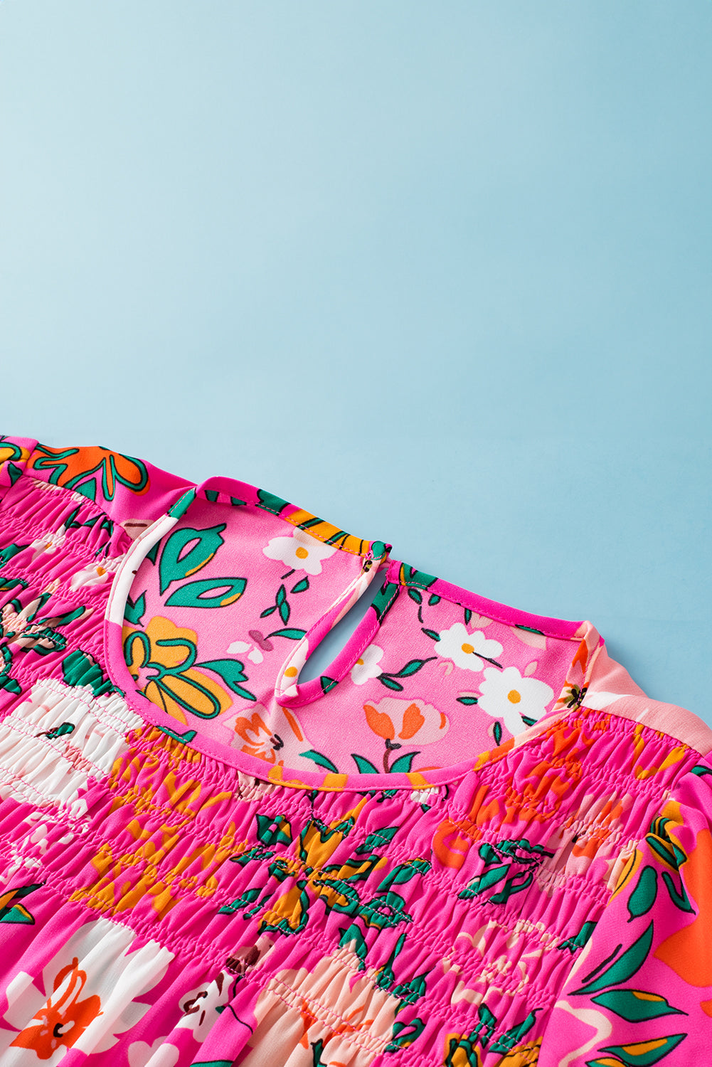 Pink Floral Short Sleeve Smocked Blouse