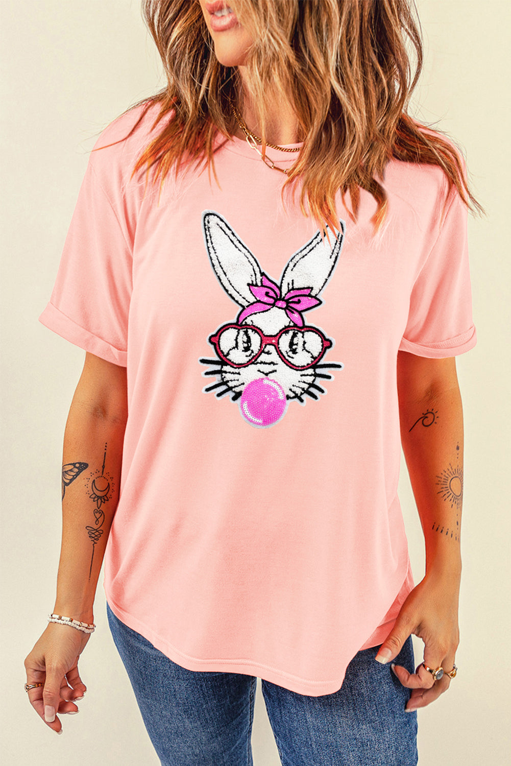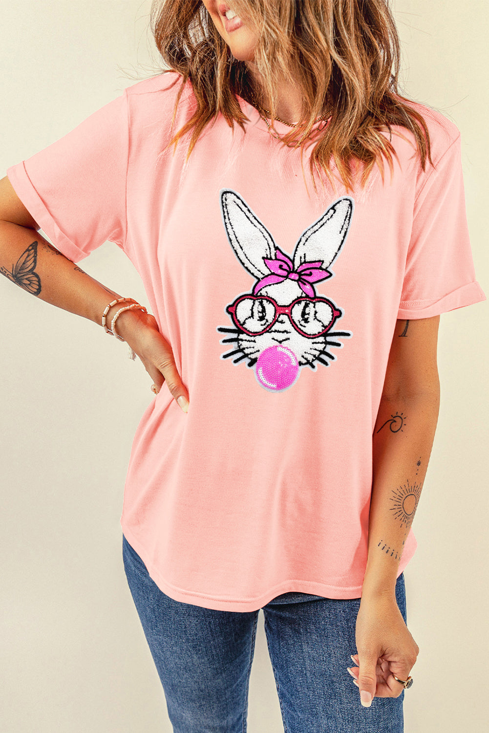 Get ready for Easter with this adorable tee with a cute bubblegum bunny print