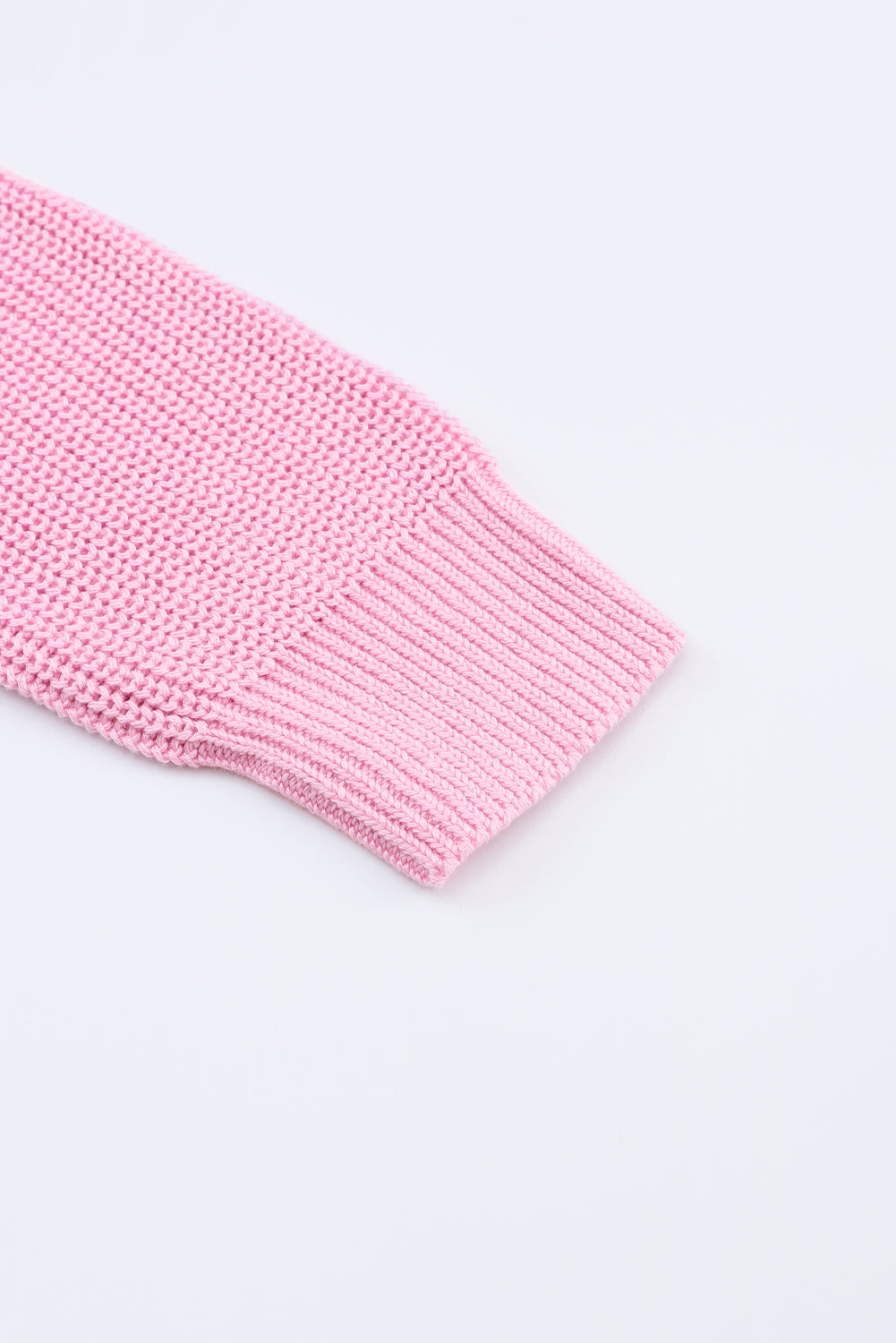 Pink Ribbed Knit V Neck Sweater