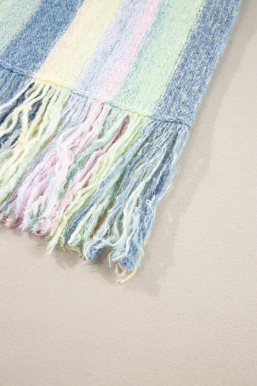 Purple Color Block Fringed Drop Shoulder Tunic Sweater