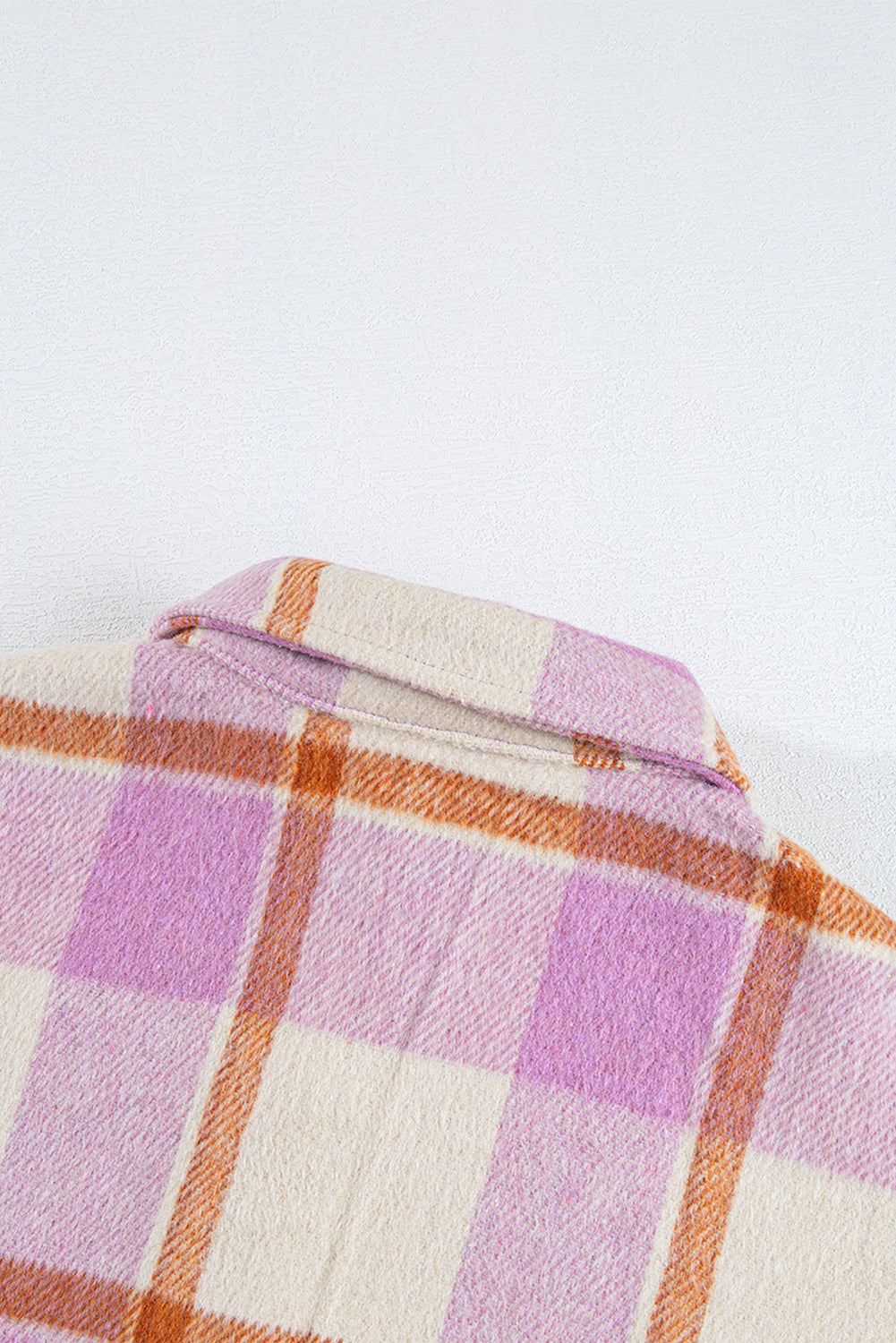 Purple Corduroy Pockets Brushed Checkered Shacket