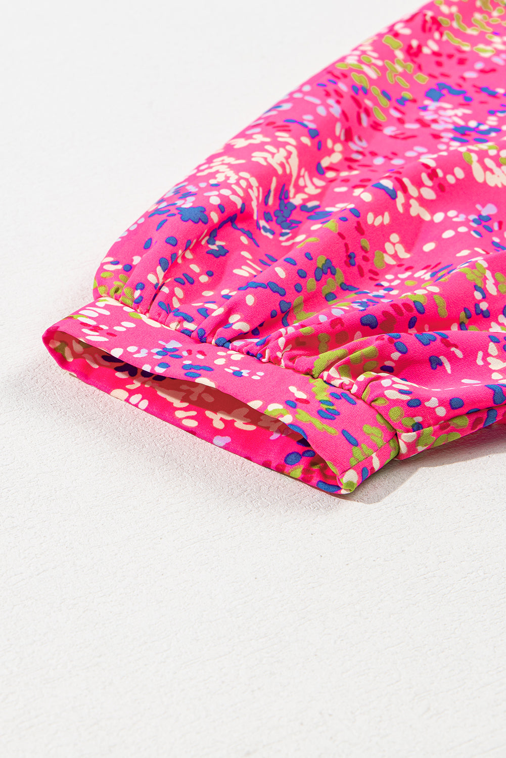 Purple Plus Size Floral Print Puff Sleeve V Neck Blouse