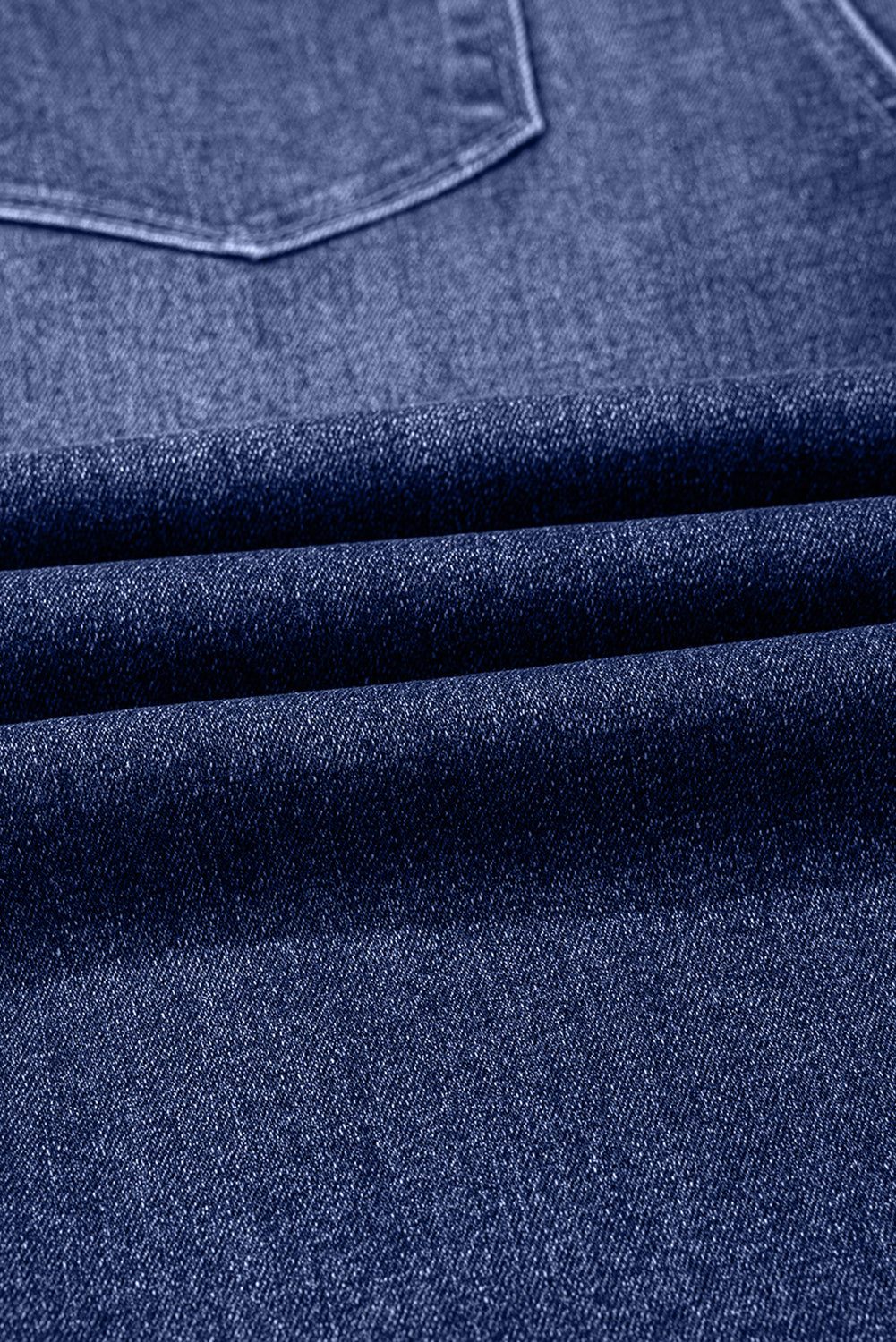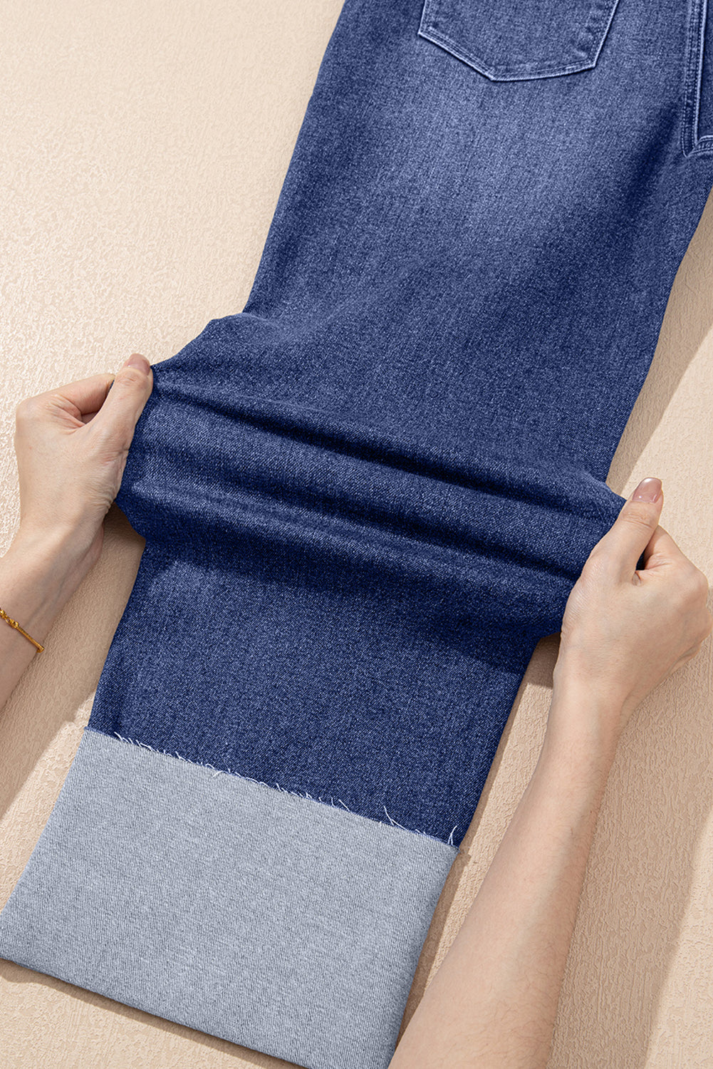 Real Teal Folded Cuffs Distressed Straight High Waist Jeans