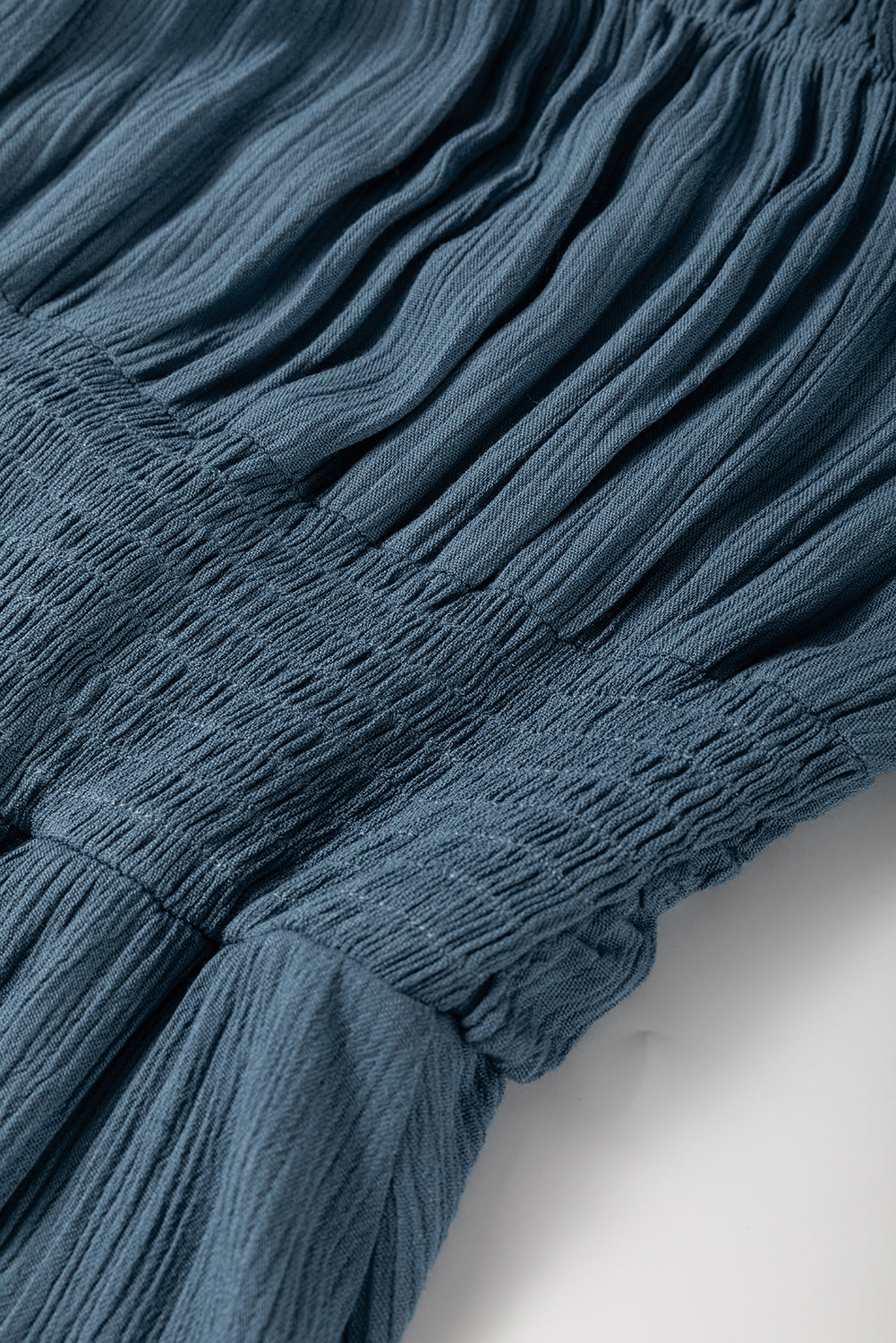 Real Teal Frilled Neckline 3/4 Sleeve Layered Ruched Mini Dress