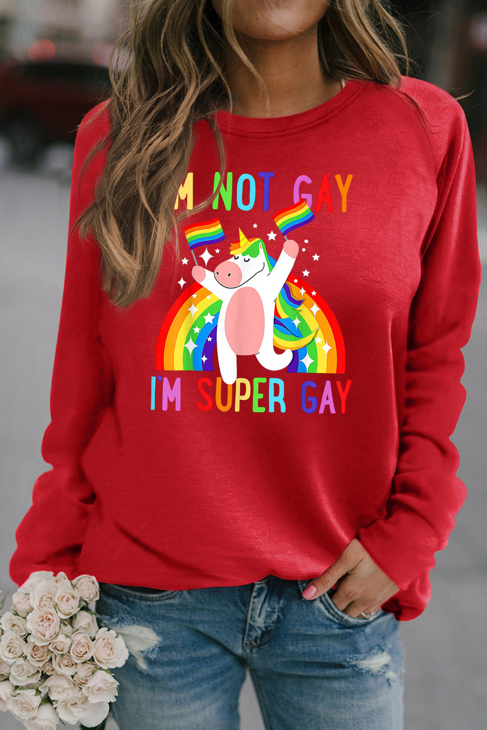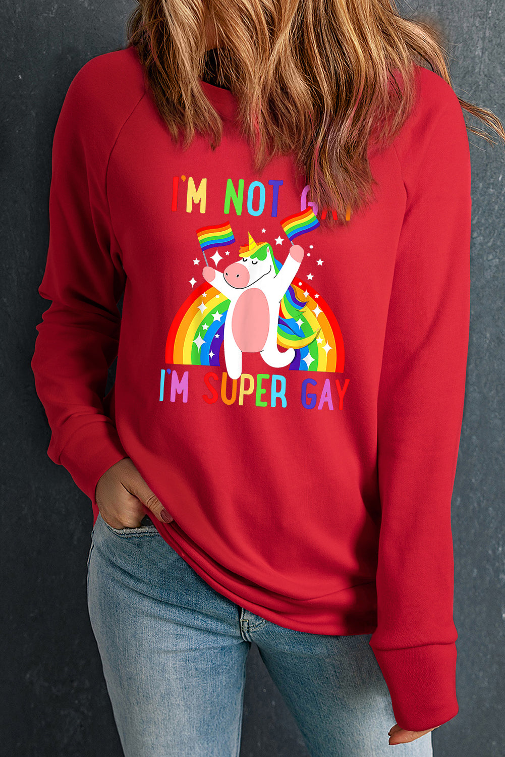 Red Raglan Sleeve Unicorn Pride Sweatshirt