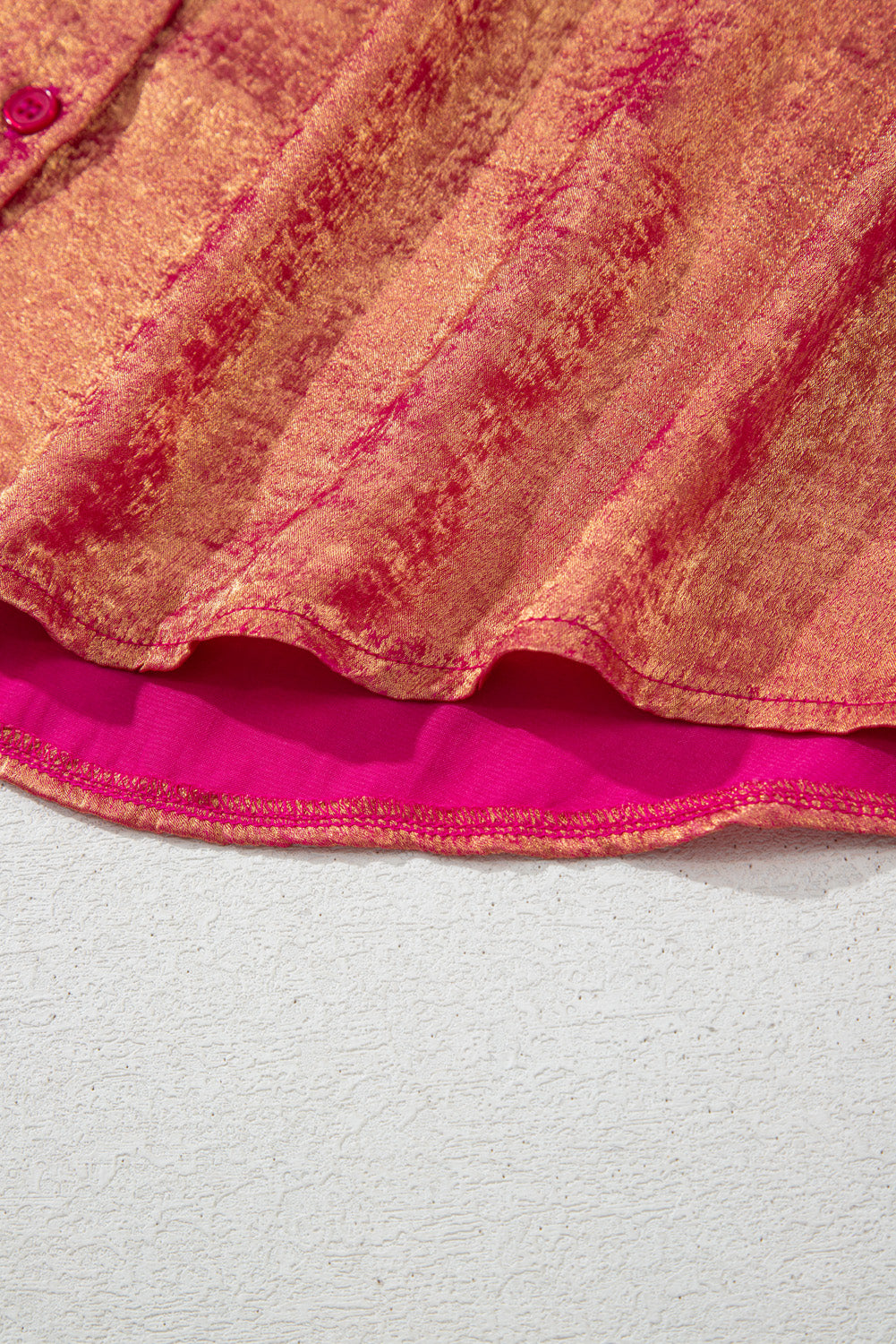 Rose Red Plus Size Metallic Sheen Short Sleeve Button Up Shirt