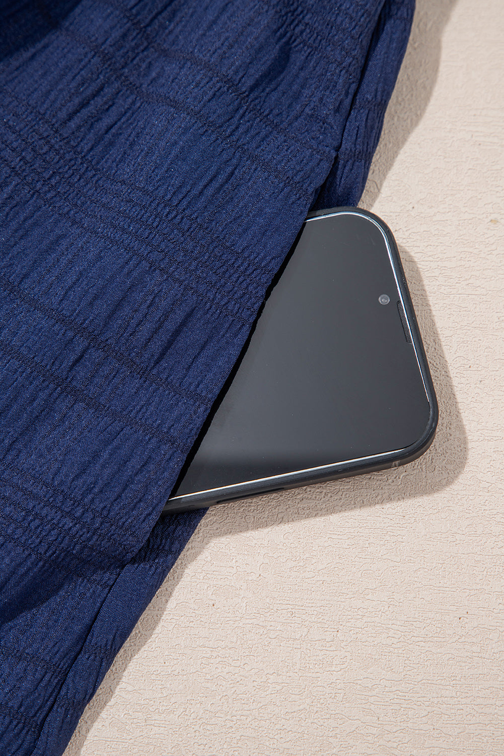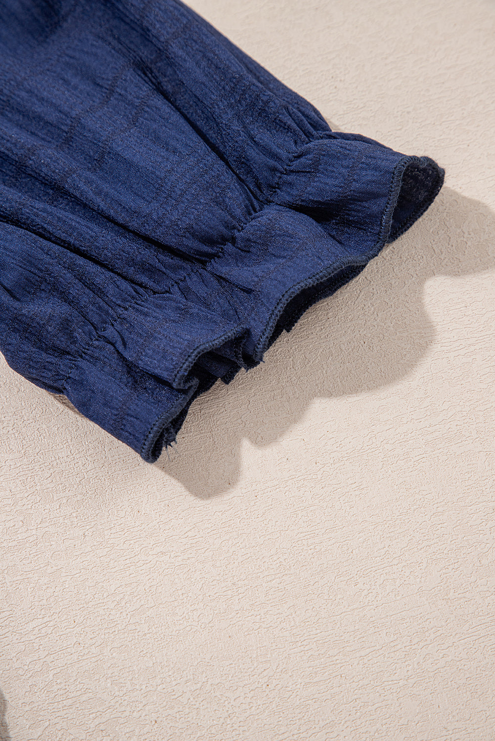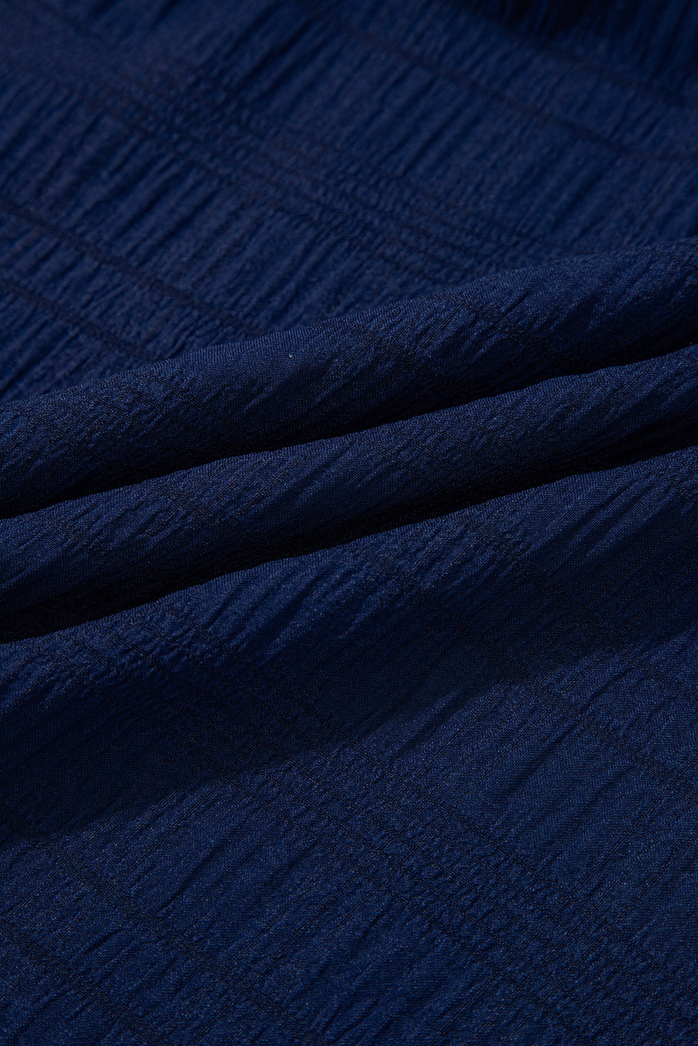 Sail Blue Solid Textured Smocked Puff Short Sleeve High Waist Long Dress