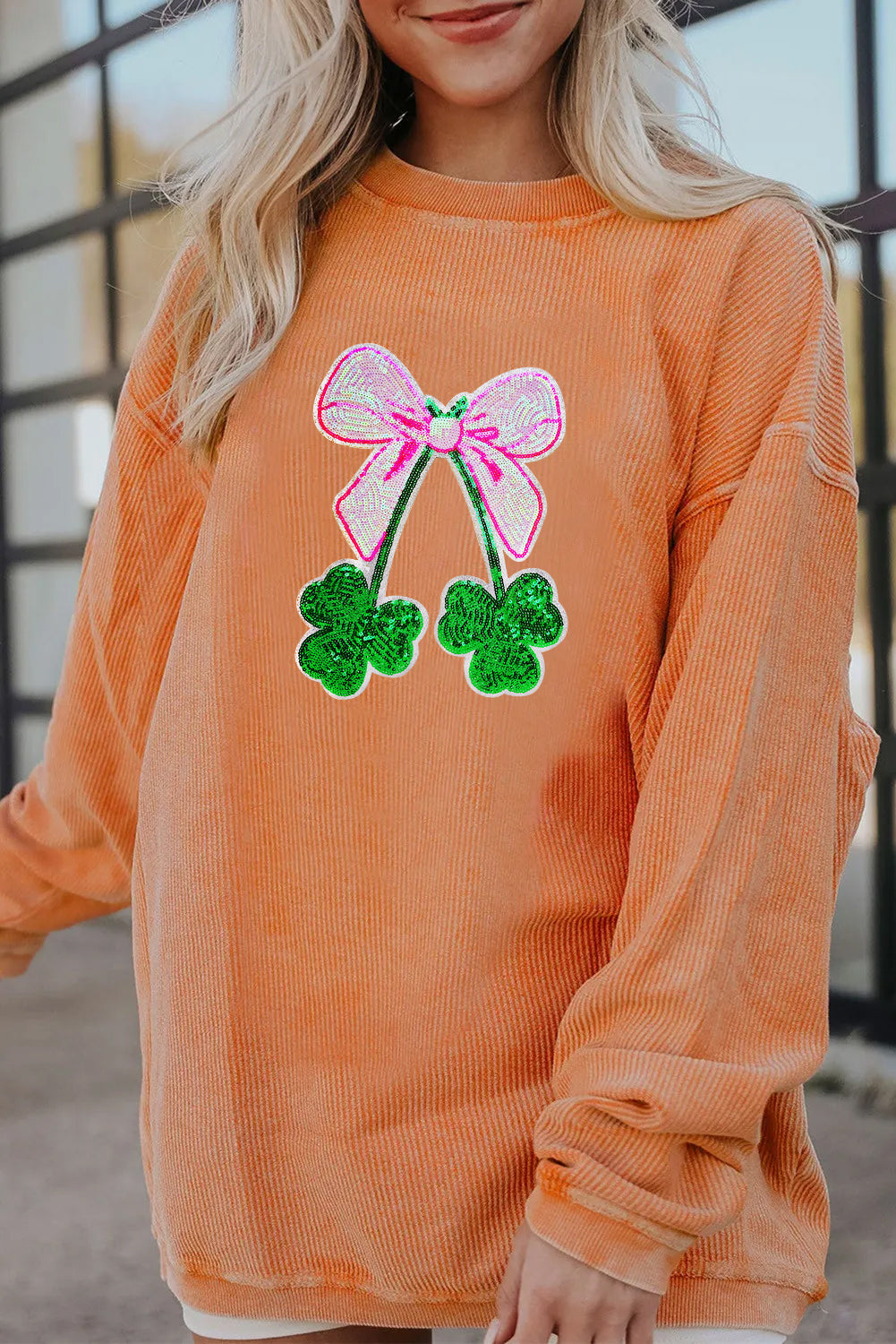 Saint Patrick’s Day Bow Clover Graphic Corded Sweatshirt