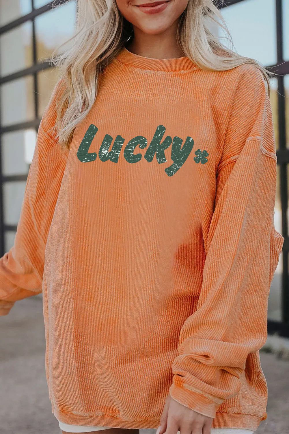 Saint Patrick’s Day Lucky Clover Graphic Corded Sweatshirt