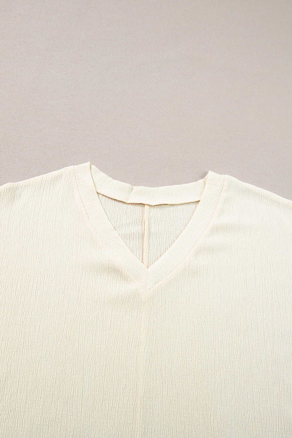 Sapphire Crinkled V Neck Wide Sleeve T-shirt
