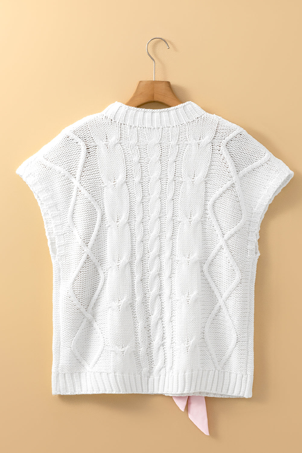 Simply Taupe Cable Knit Colorblock Satin Bowknot Short Sleeve Sweater