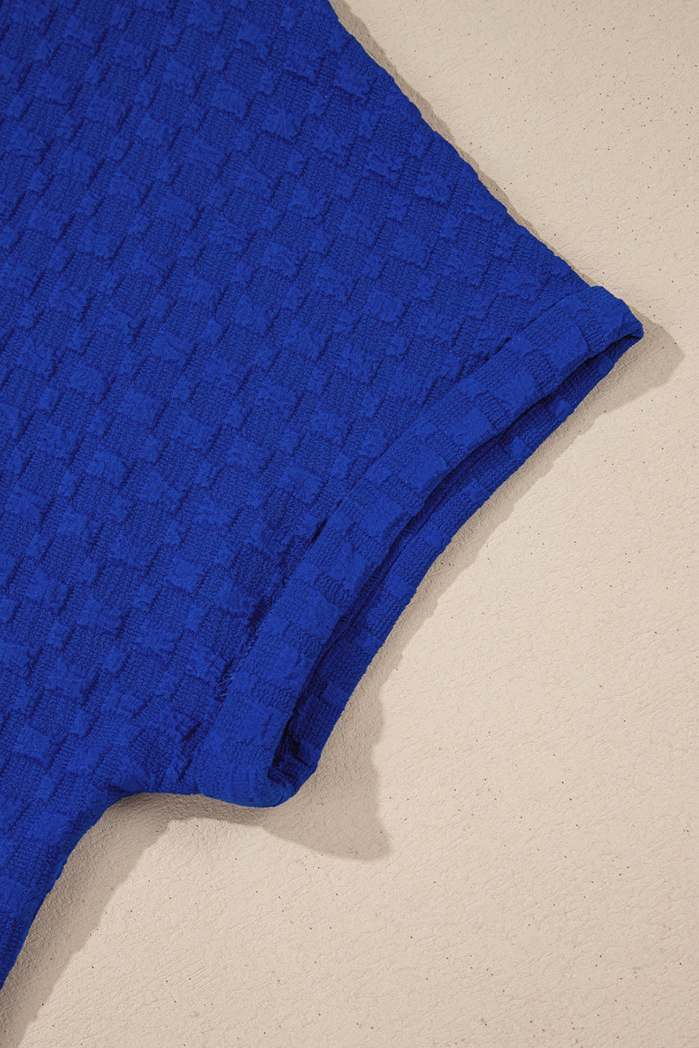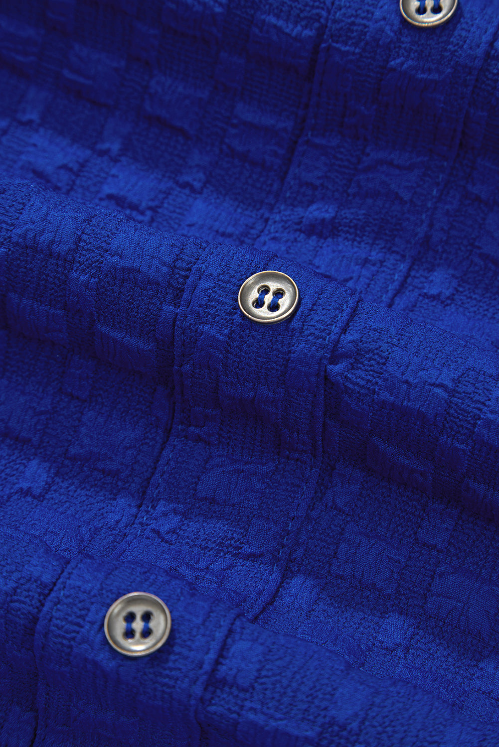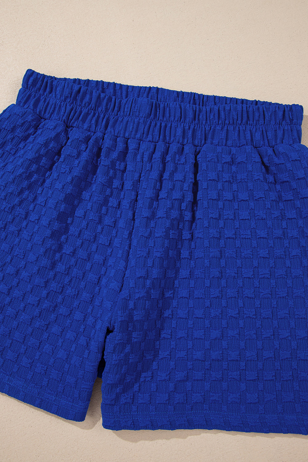 Sky Blue Jacquard Textured Buttoned Tee and Shorts Set