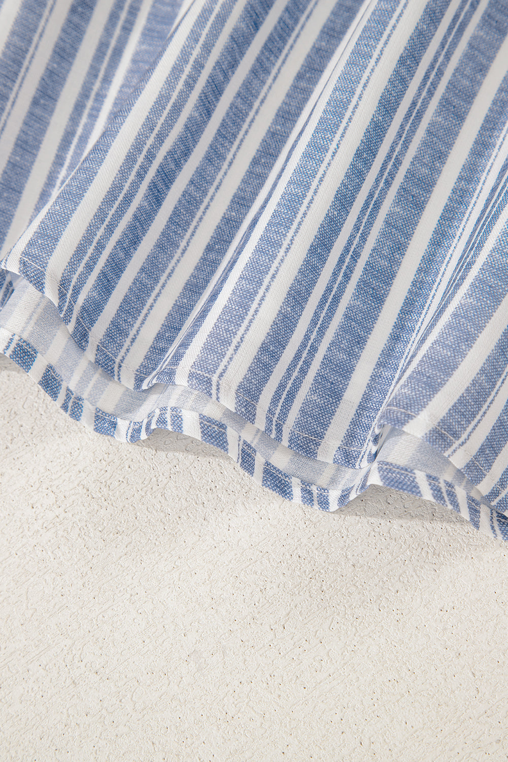 Sky Blue Stripe Buttoned Office Waistcoat Mini Skirt Set