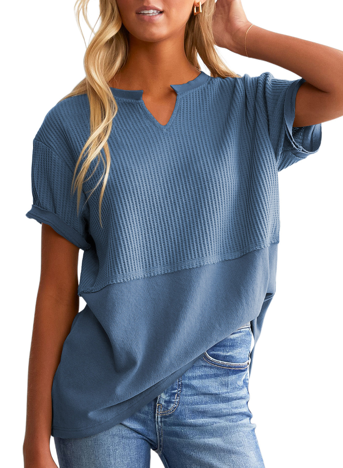 - Feature: Waffle knit tops with v neck design, loose fit, short sleeve shirts, basic tunic tops, solid color tees. A chic basicstyle can create many possible stylish combinations.