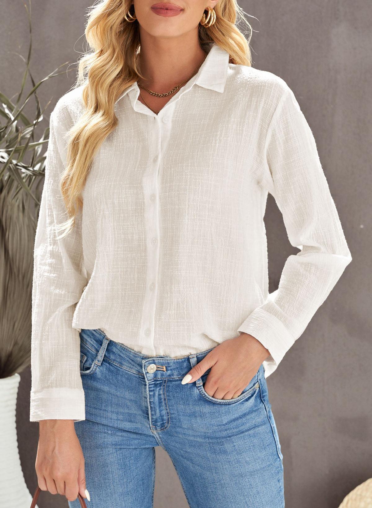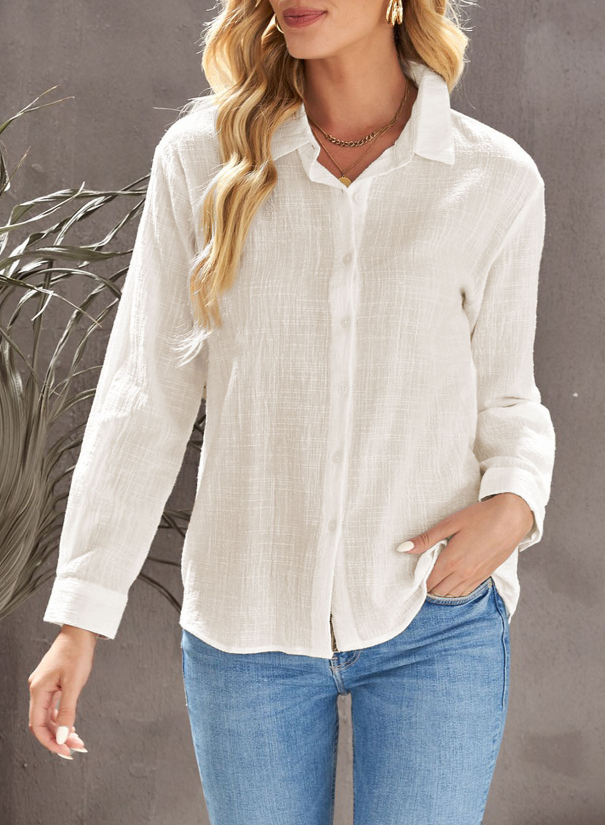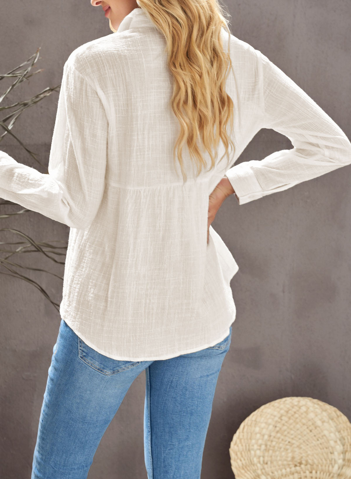Solid Color Textured Solid Color Basic Shirt