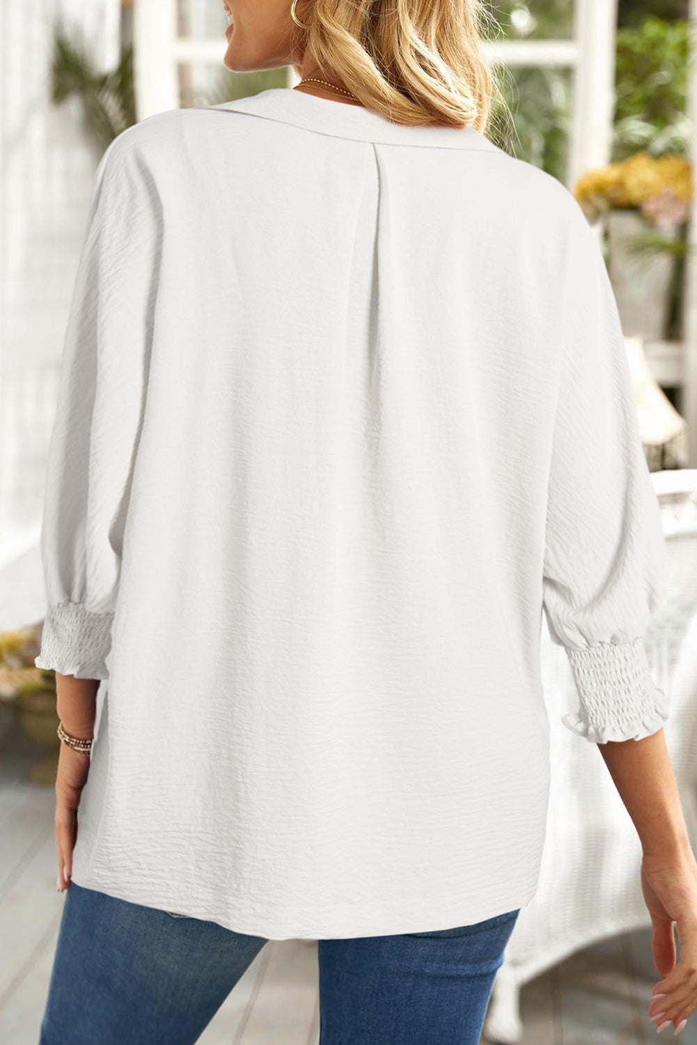 Solid Color V Neck Half Sleeve Range Loose Blouse