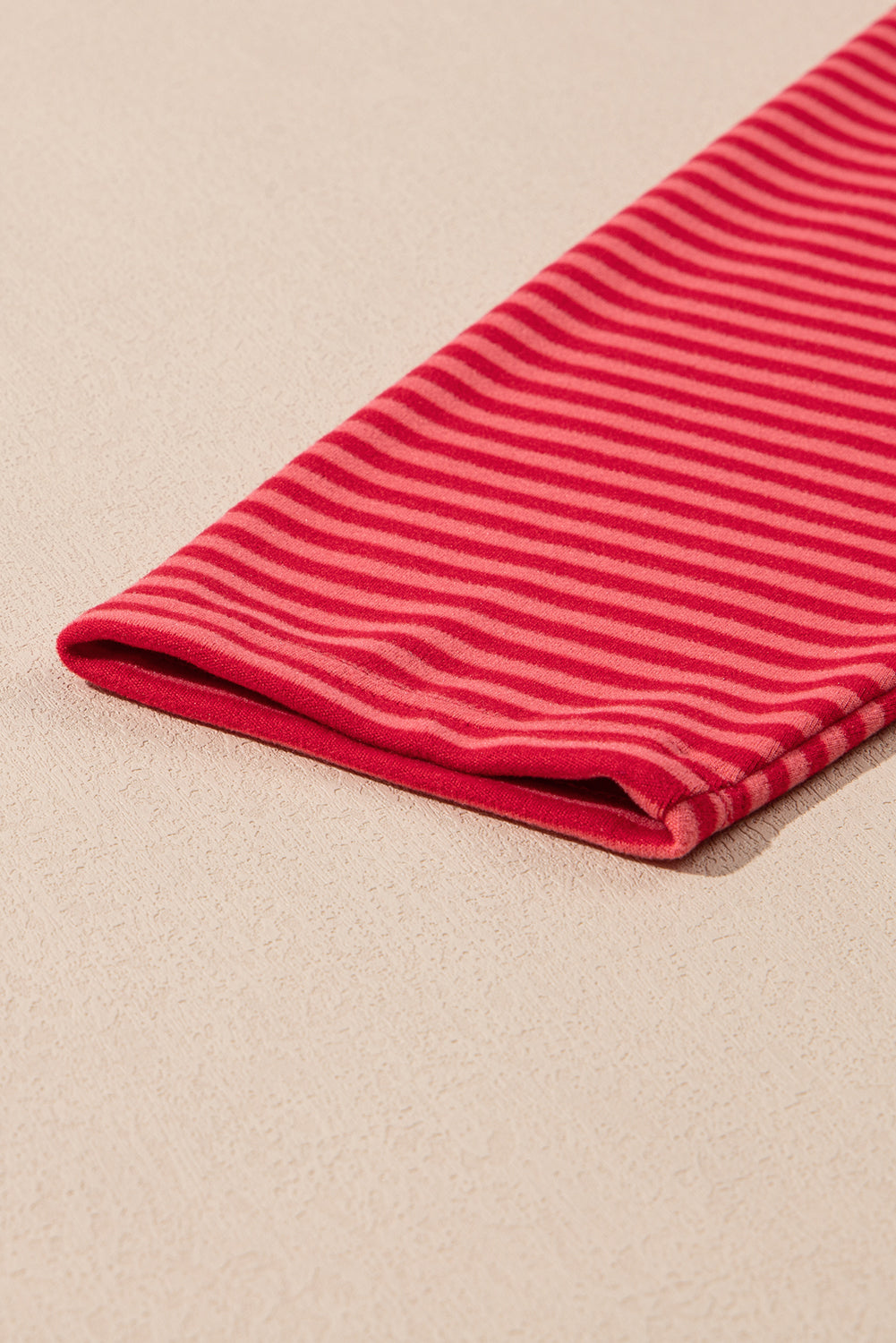 Stripe Plus Size Drop Shoulder Long Sleeve Buttoned Decor Top
