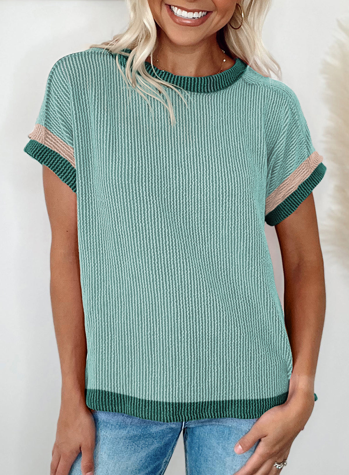 Knitted Crewneck Short-sleeved T-shirt with Contrasting Panels