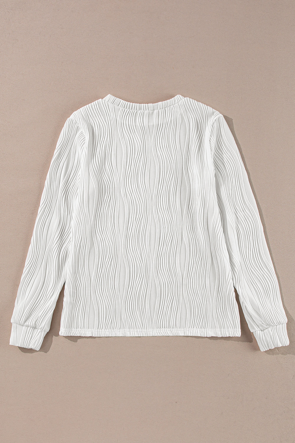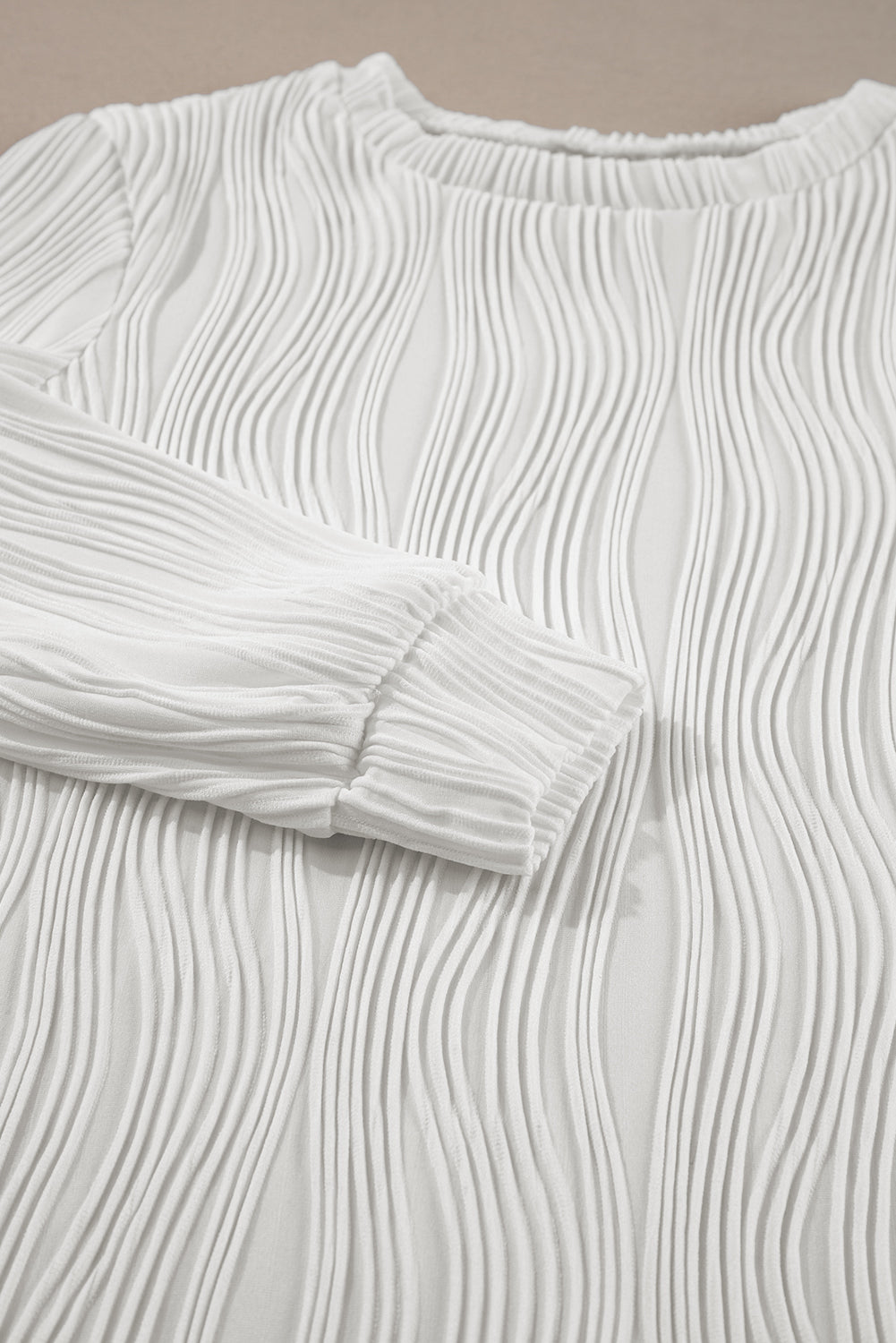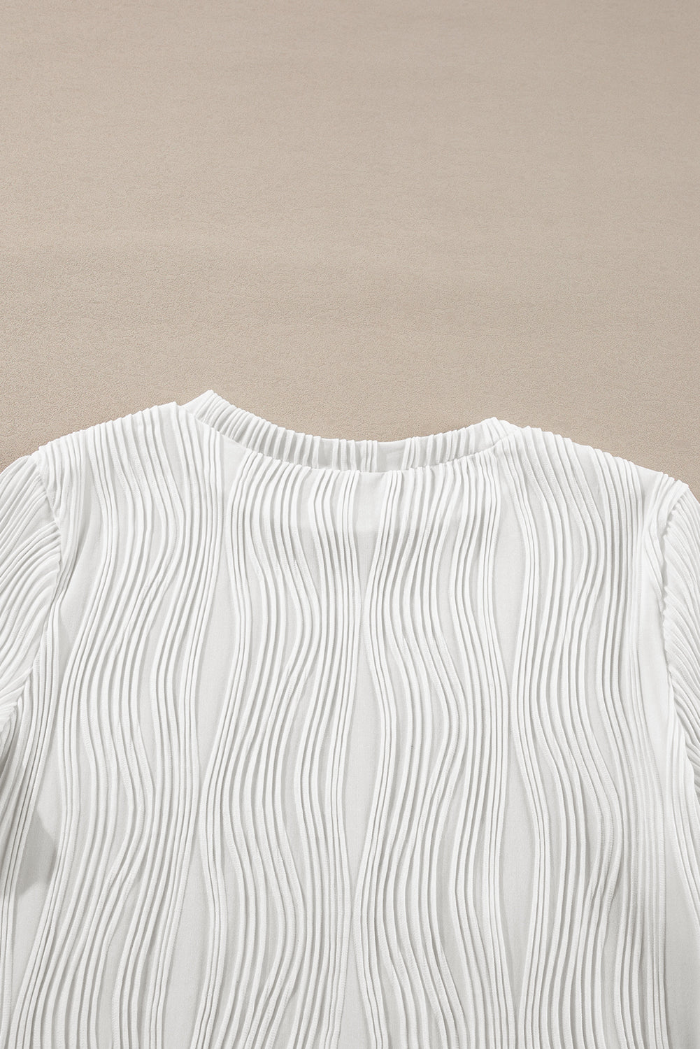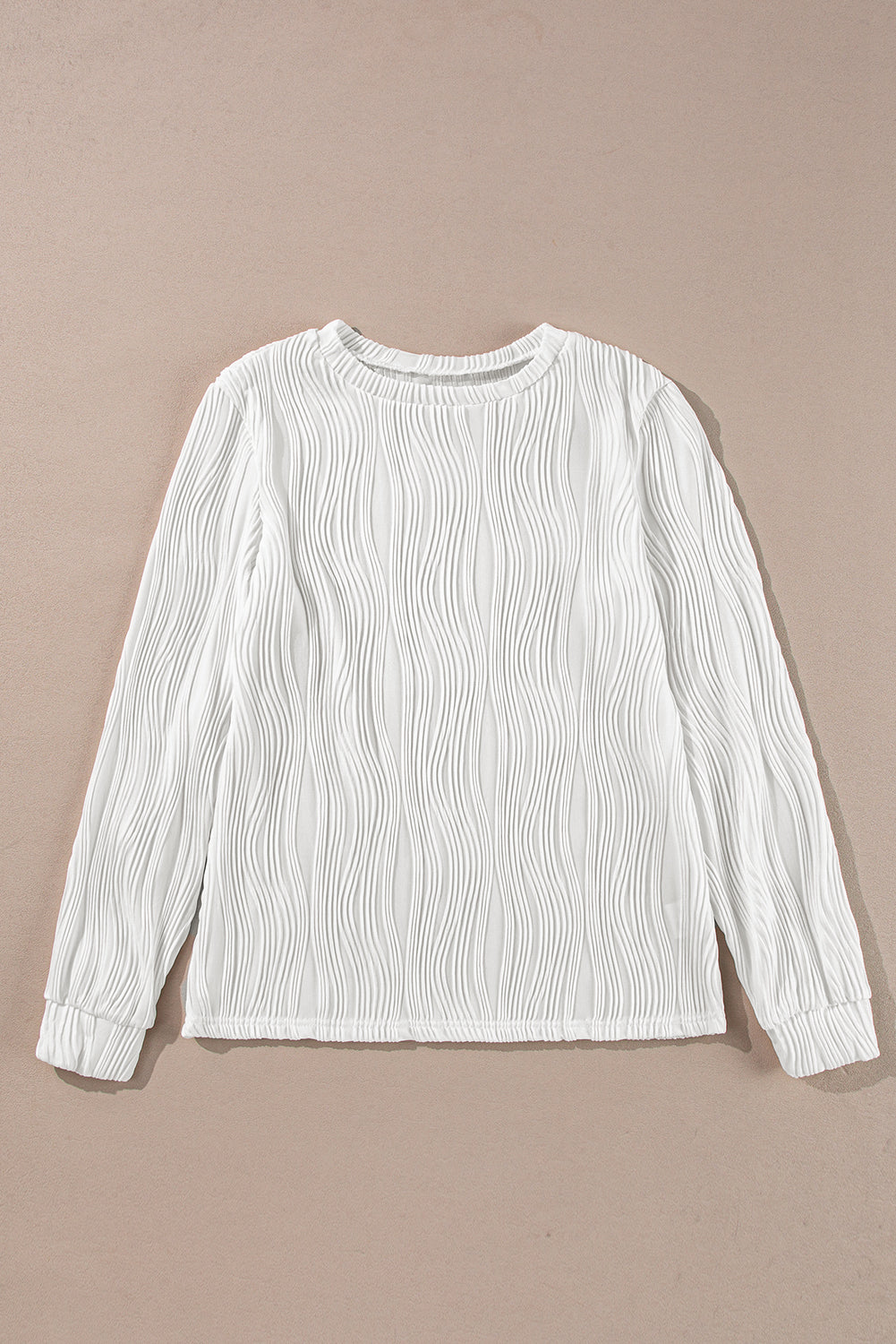 - This round neck top is texture with intricate wavy fabric for a distinctive, tactile appeal.