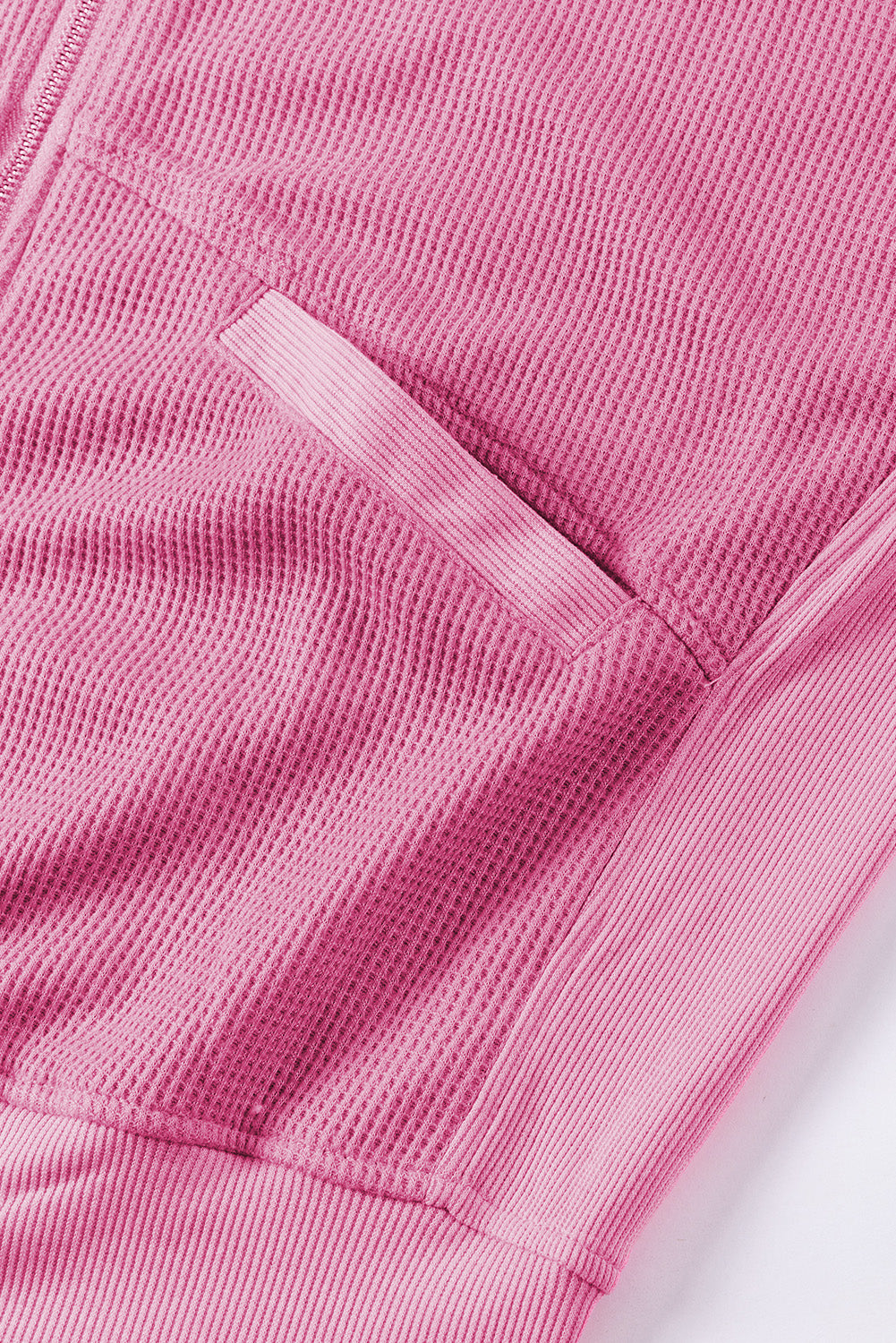 Thermal Waffle Knit Full Zipper Hooded Jacket