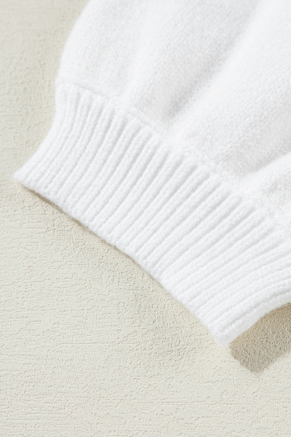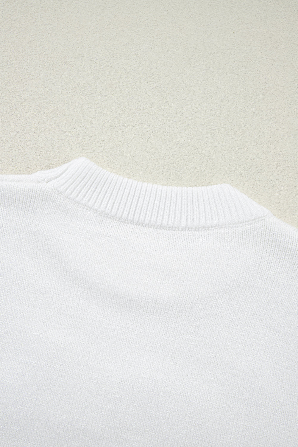 A ribbed crew cut neckline, puff short sleeves with fitted cuffs.