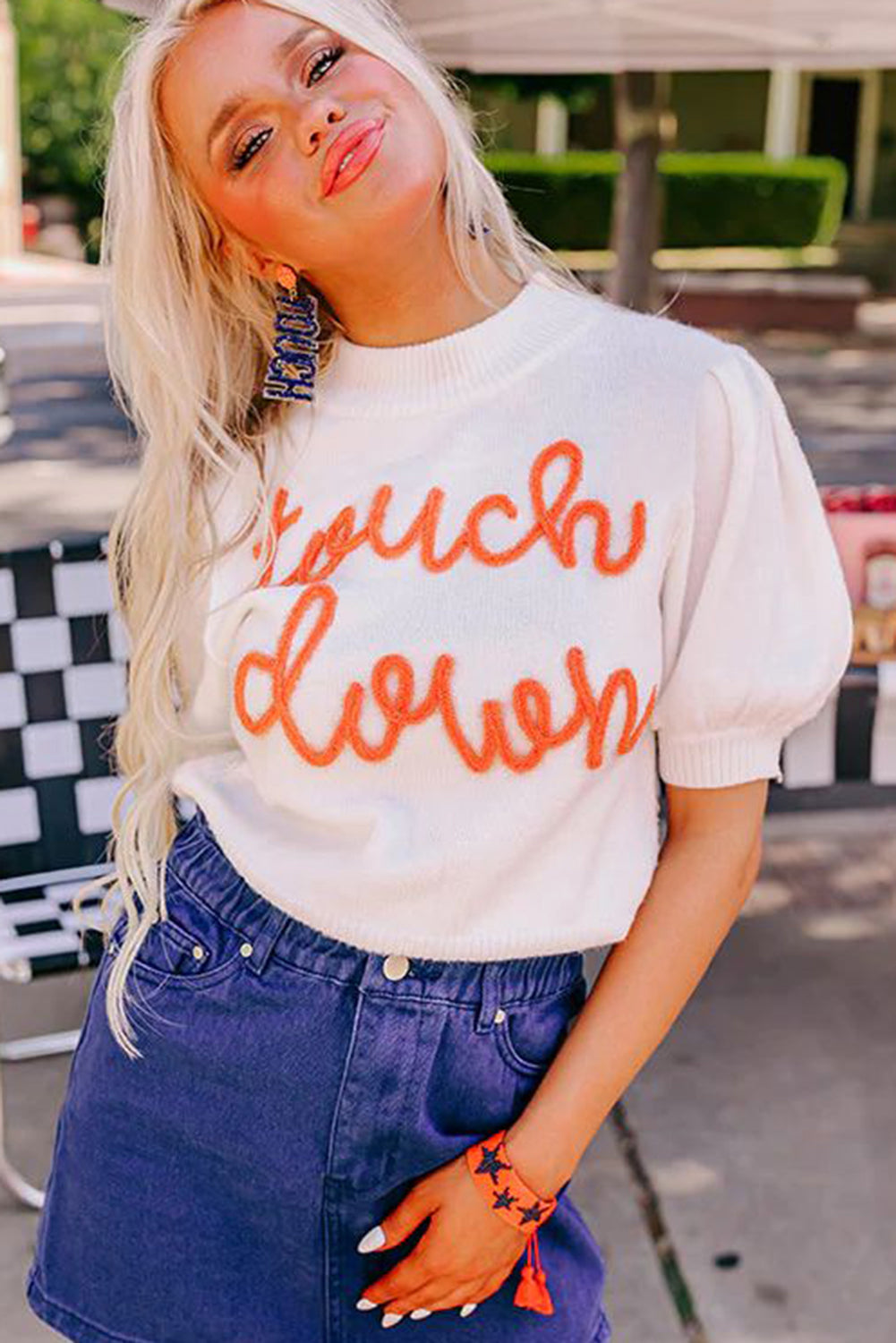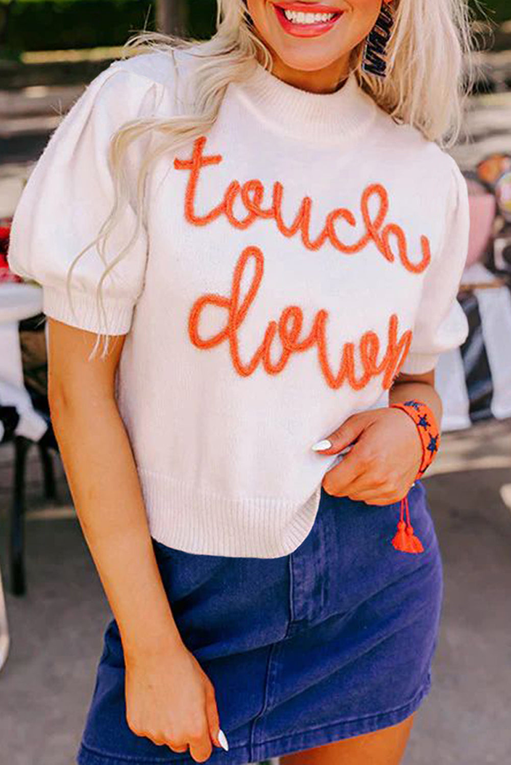 Touchdown Tinsel Puff Short Sleeve Crew Neck Sweater