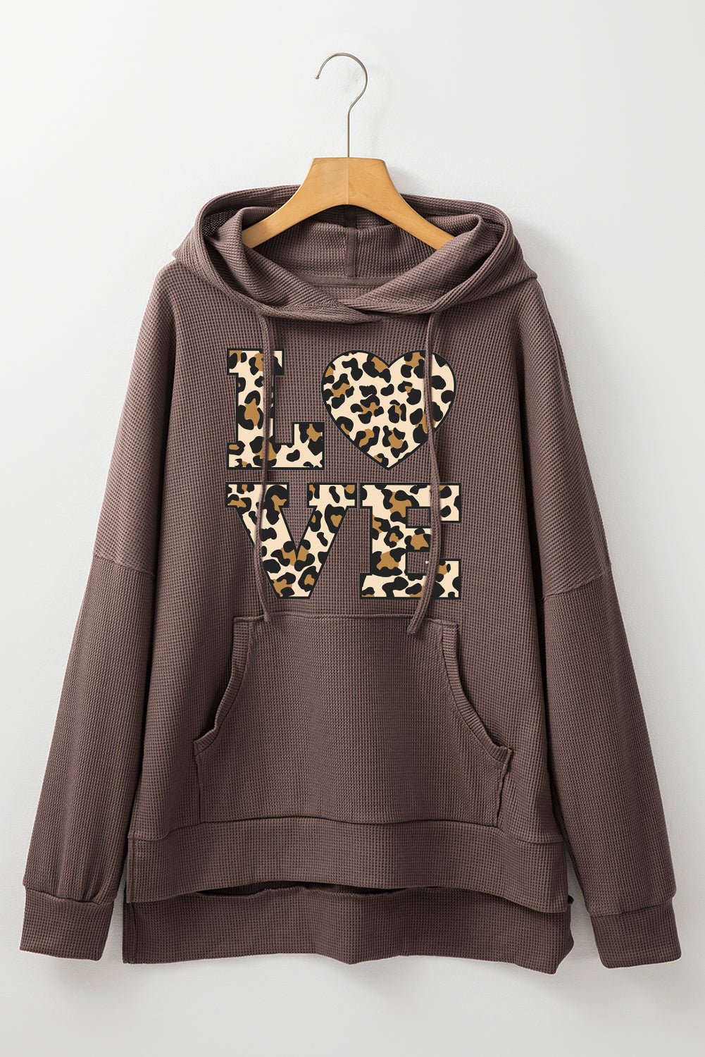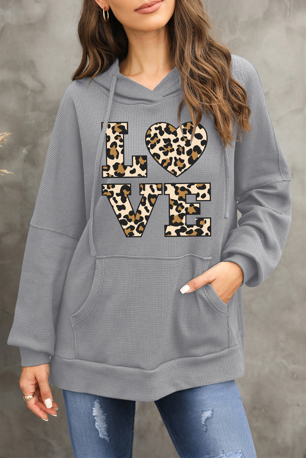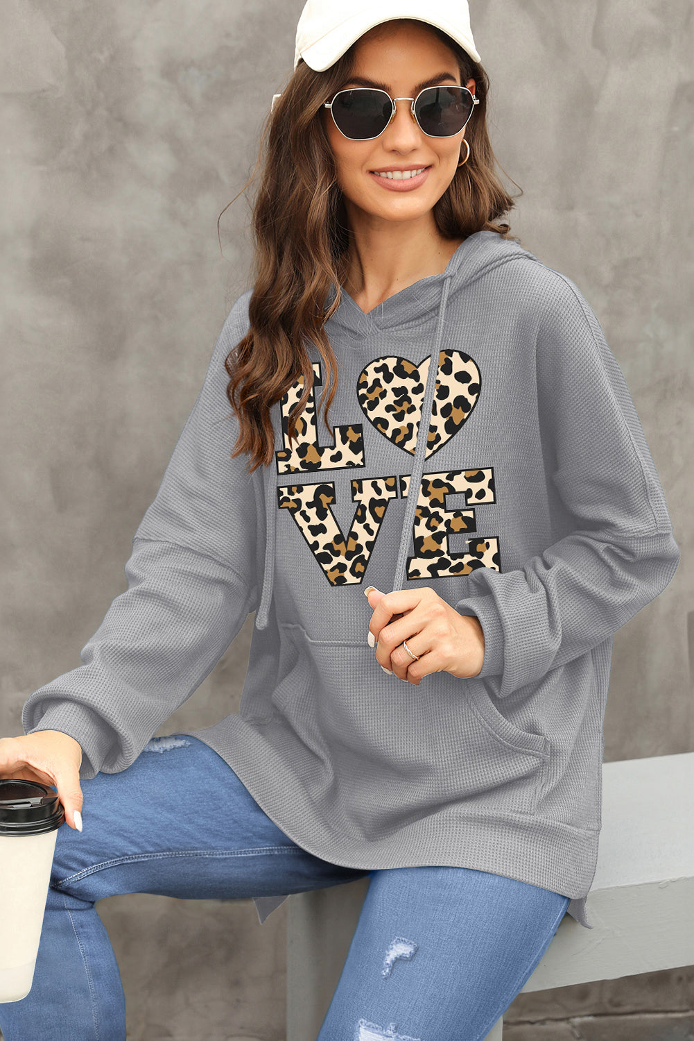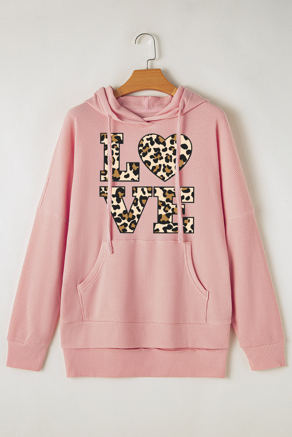 Valentine's Day Heart Leopard Print Waffle Knit Fleece Lined Hoodie
