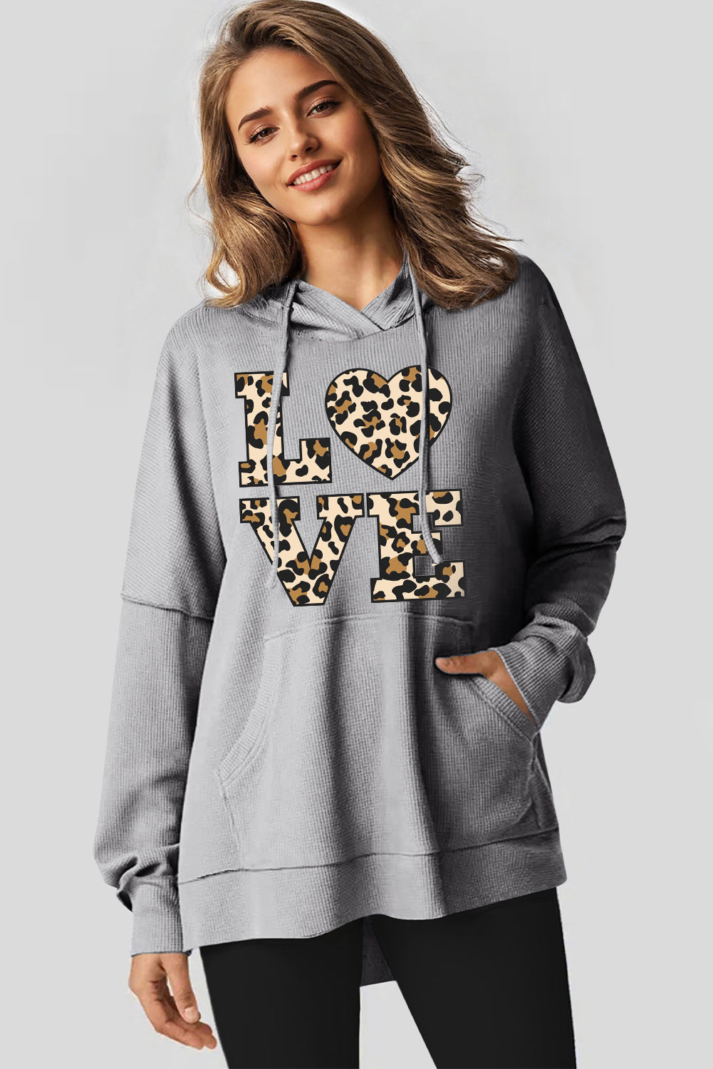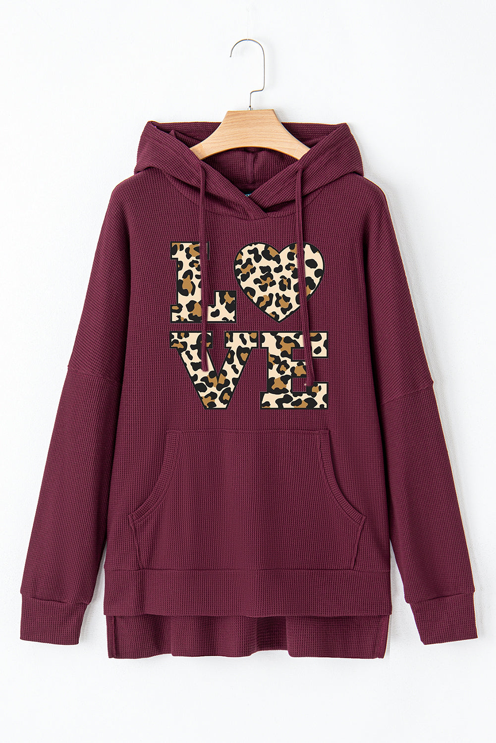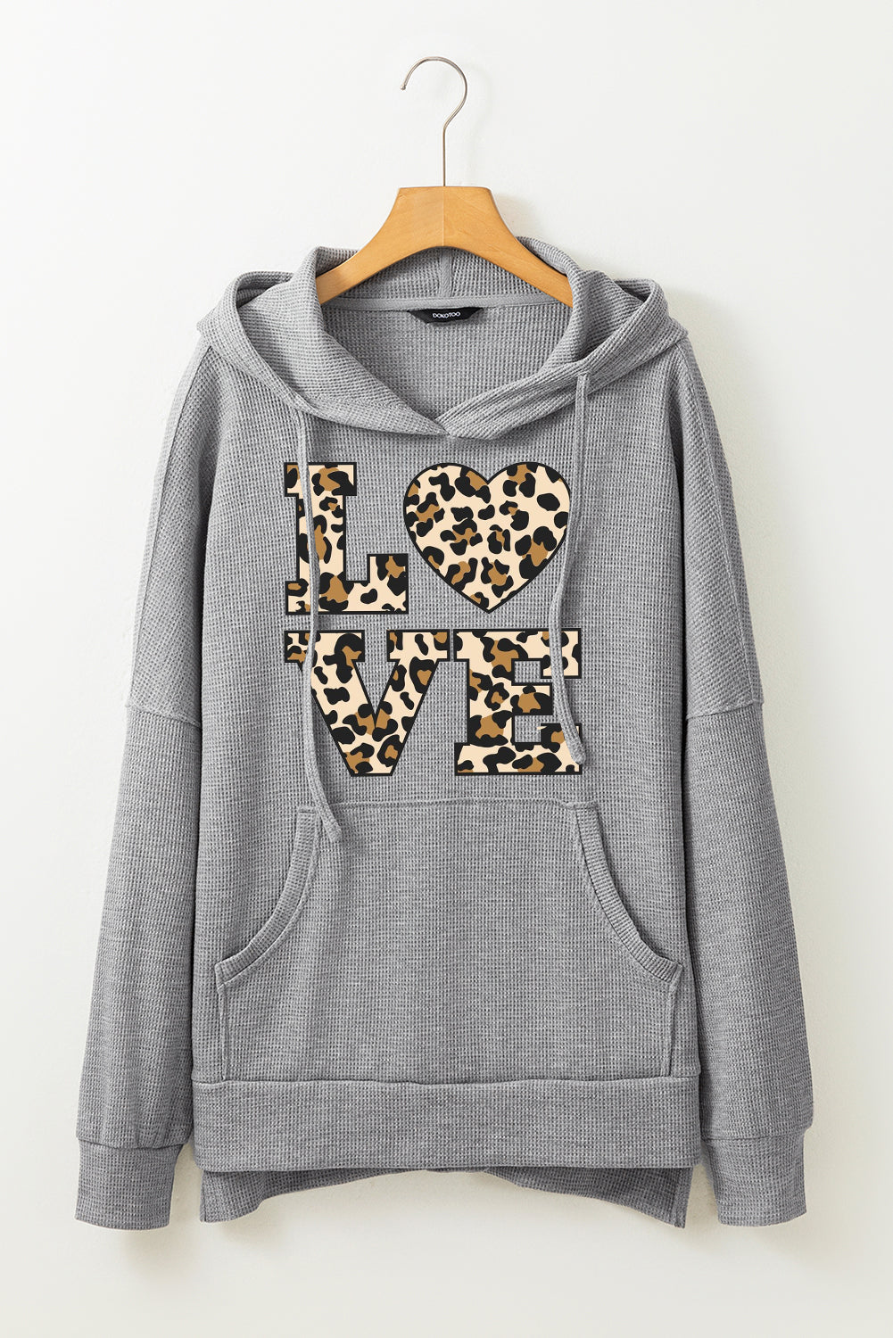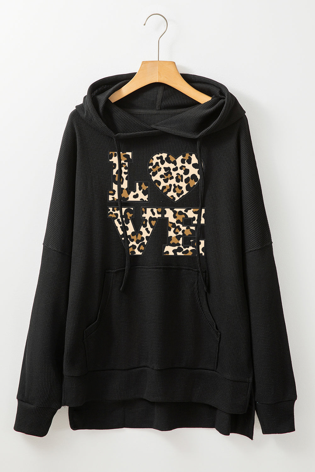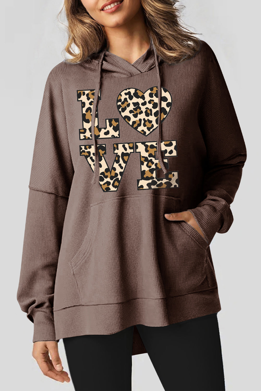 Valentine's Day Heart Leopard Print Waffle Knit Fleece Lined Hoodie
