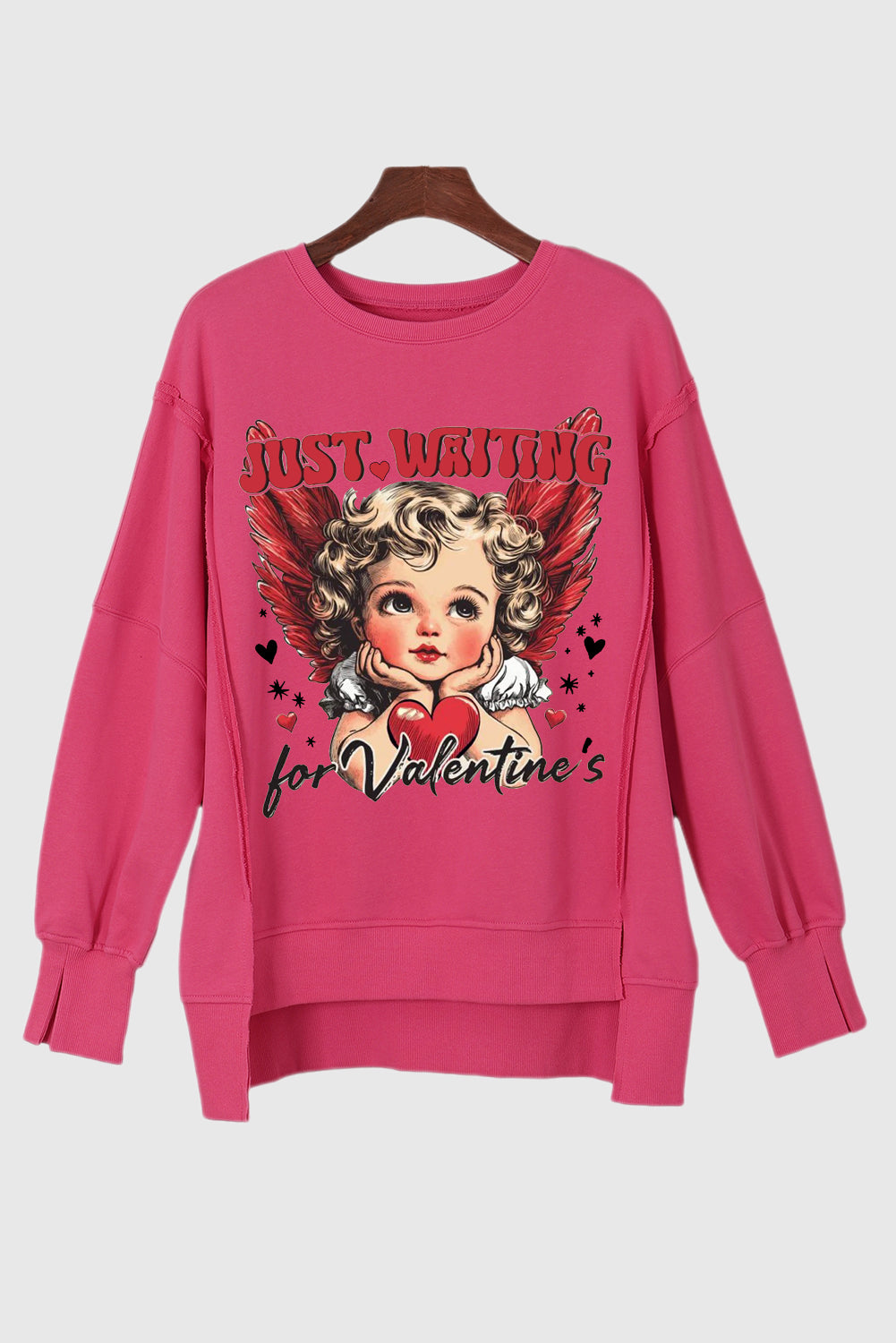 Valentine's Day Seam Drop Shoulder High-Low Hem Sweatshirt
