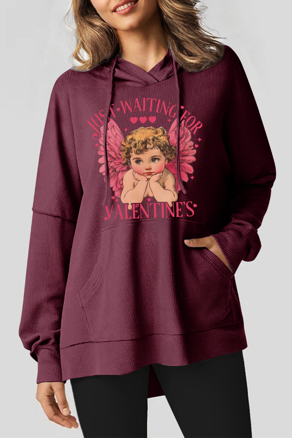 Valentine's Day Sweetheart Date Night Waffle Knit Fleece Lined Hoodie