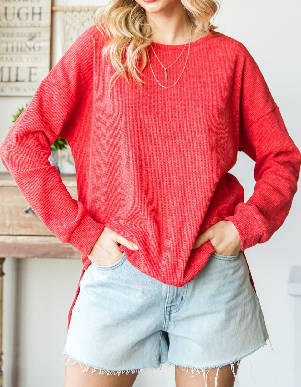 - Keep it simple in the Waffle Knit Long Sleeve Top