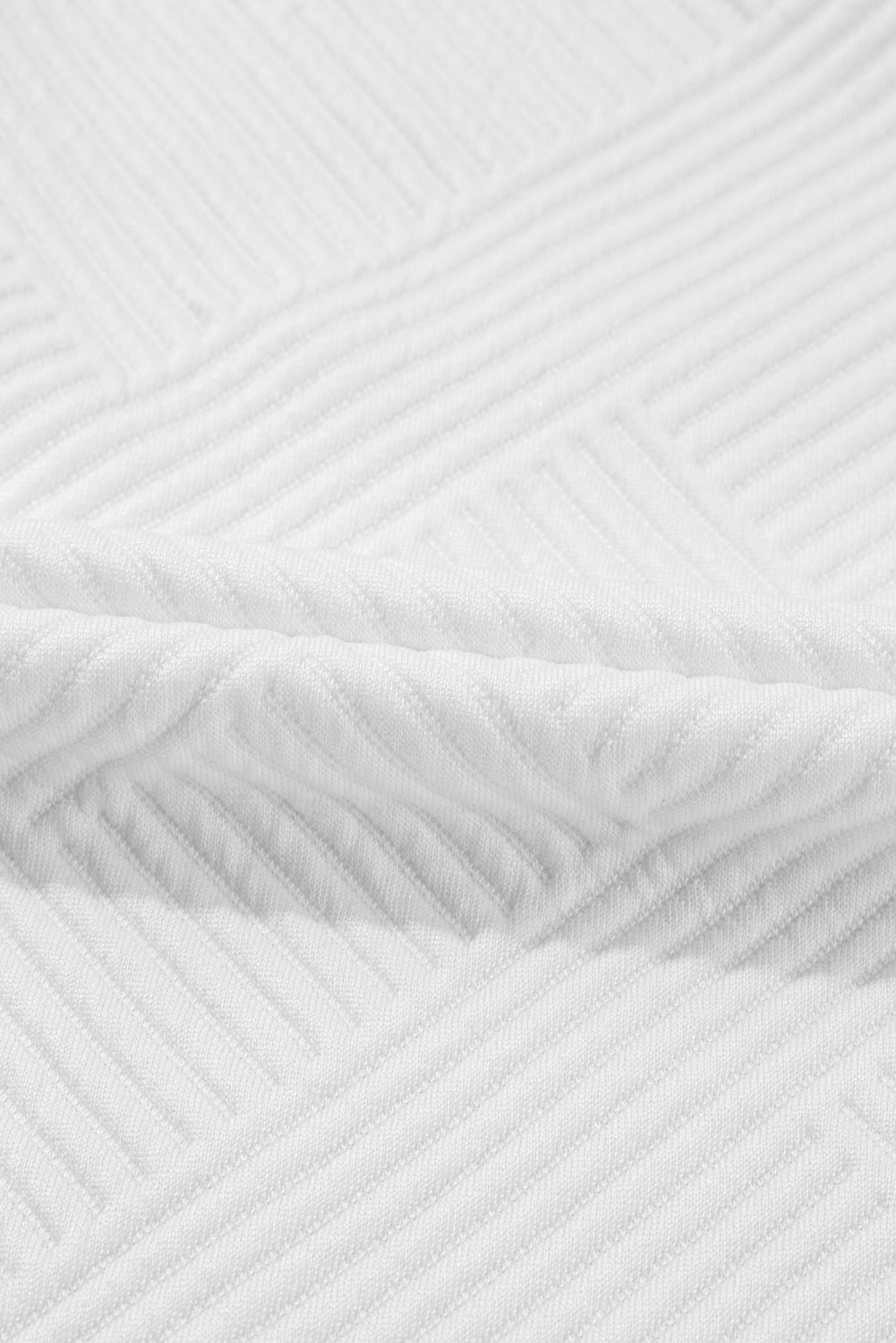 White Abstract Print Tiered Ruffled Sleeve Textured Knit Top