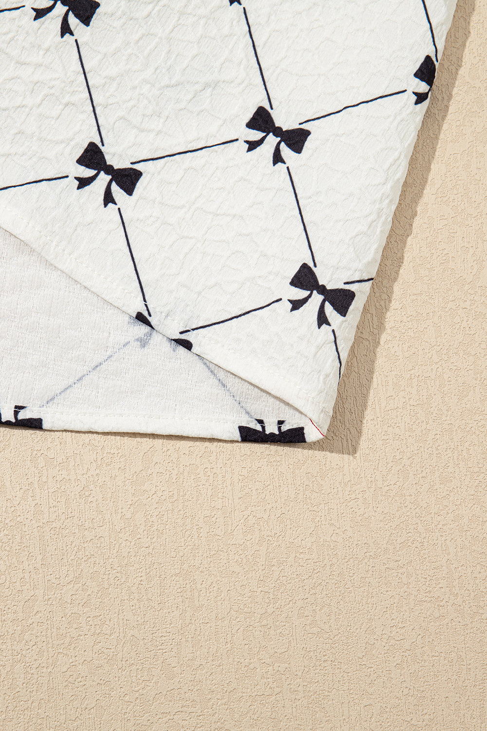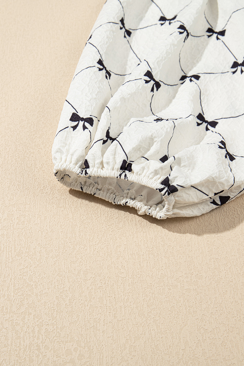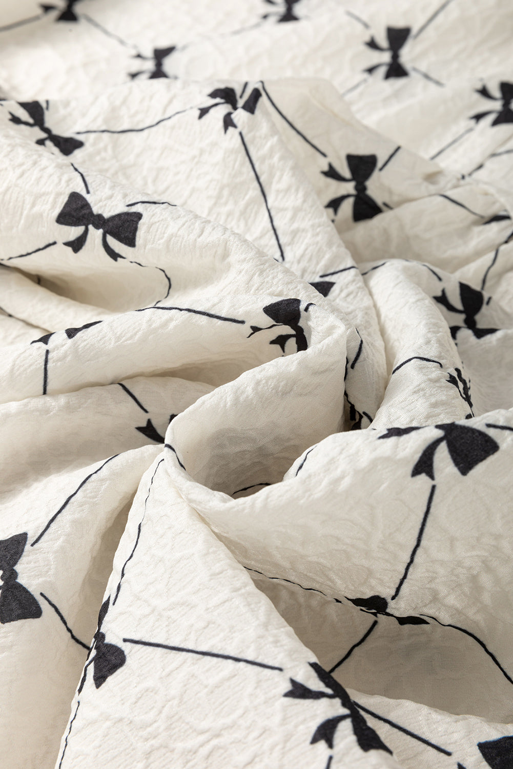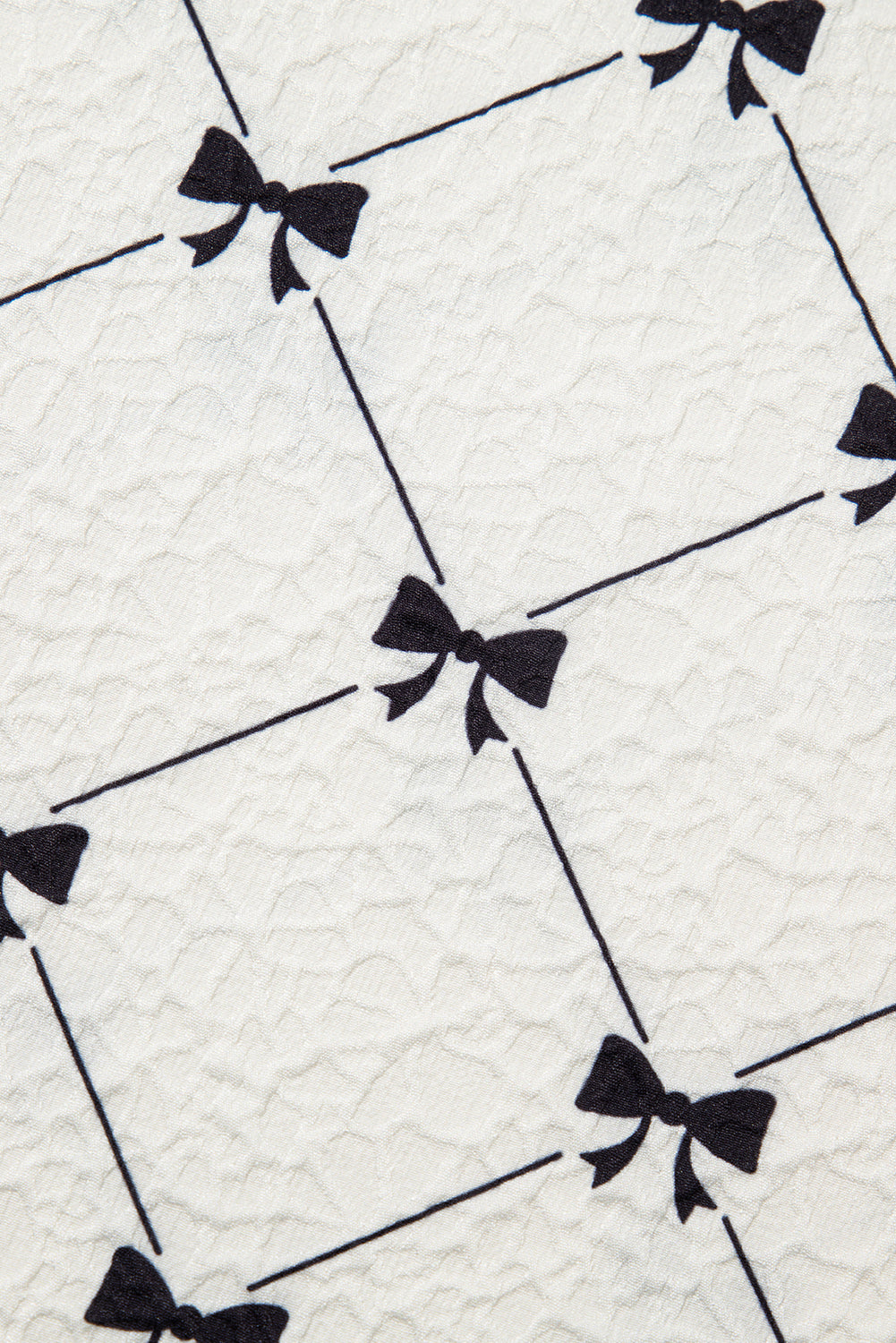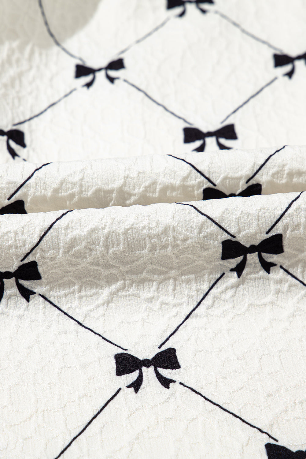 White Bowtie Pattern Textured Puff Half Sleeve Loose Mini Dress